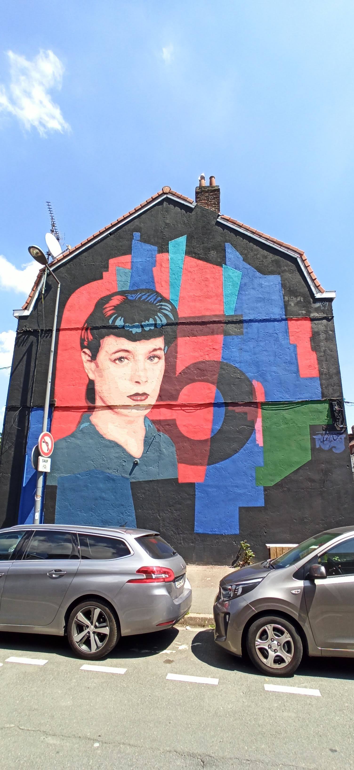 L’oeuvre est de type graffiti. Vous pouvez l’admirer dans la ville de Lille en France et plus précisément ici : 22 Rue Barni, 59800 Lille, France.