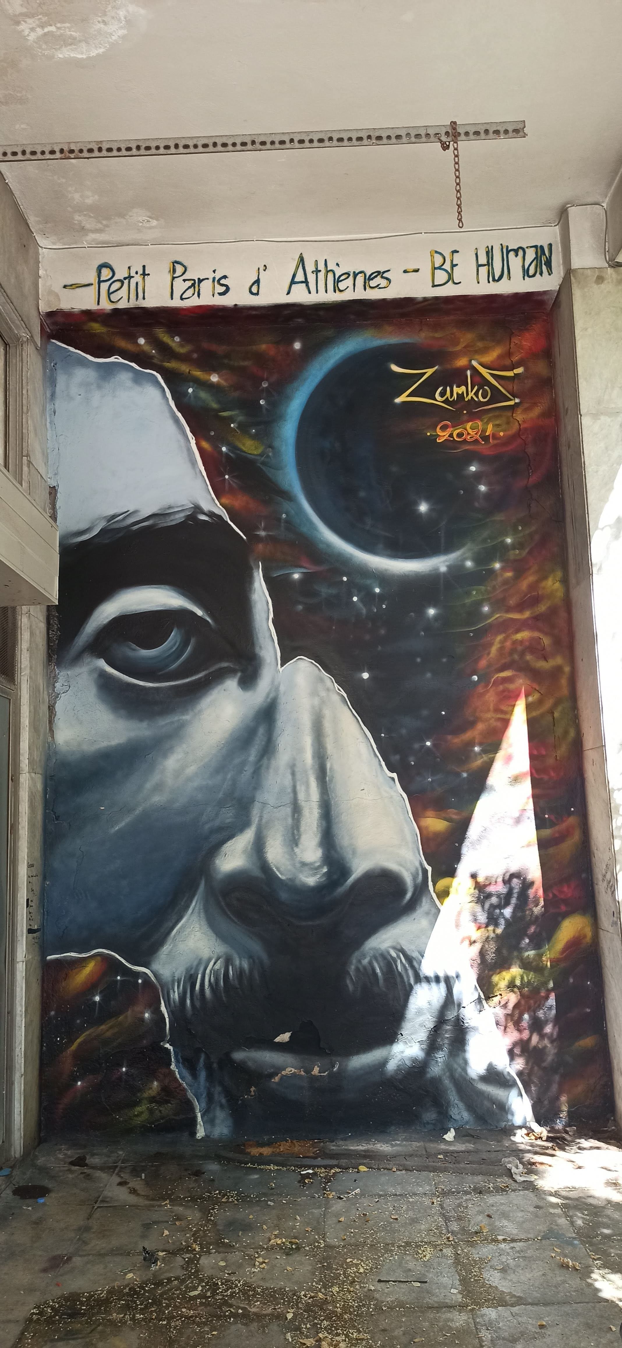 L’oeuvre est de type graffiti. Vous pouvez l’admirer dans la ville de Athina en Greece et plus précisément ici : Favierou 3, Athina 104 38, Greece.