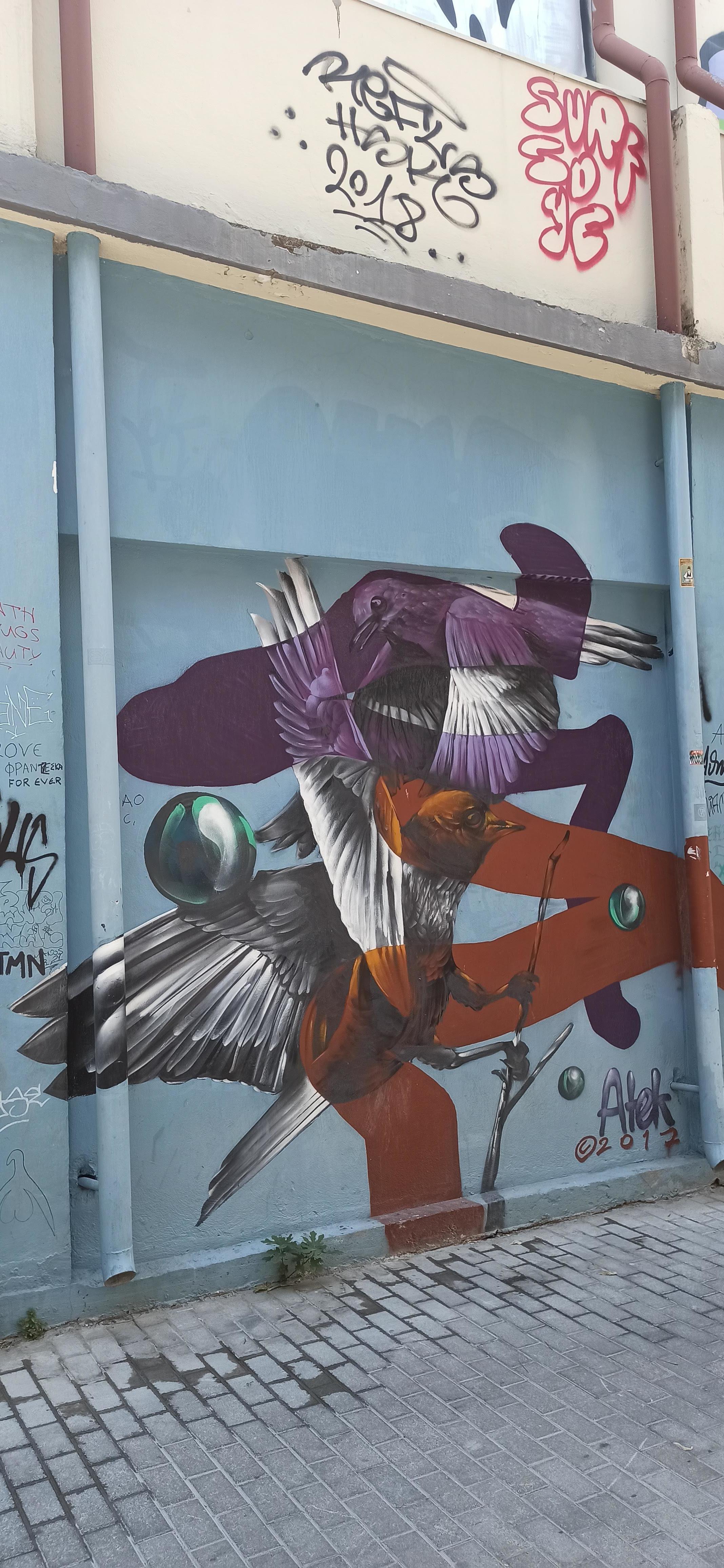 L’oeuvre est de type graffiti. Vous pouvez l’admirer dans la ville de Athina en Greece et plus précisément ici : Louka Nika 8, Athina 105 54, Greece.