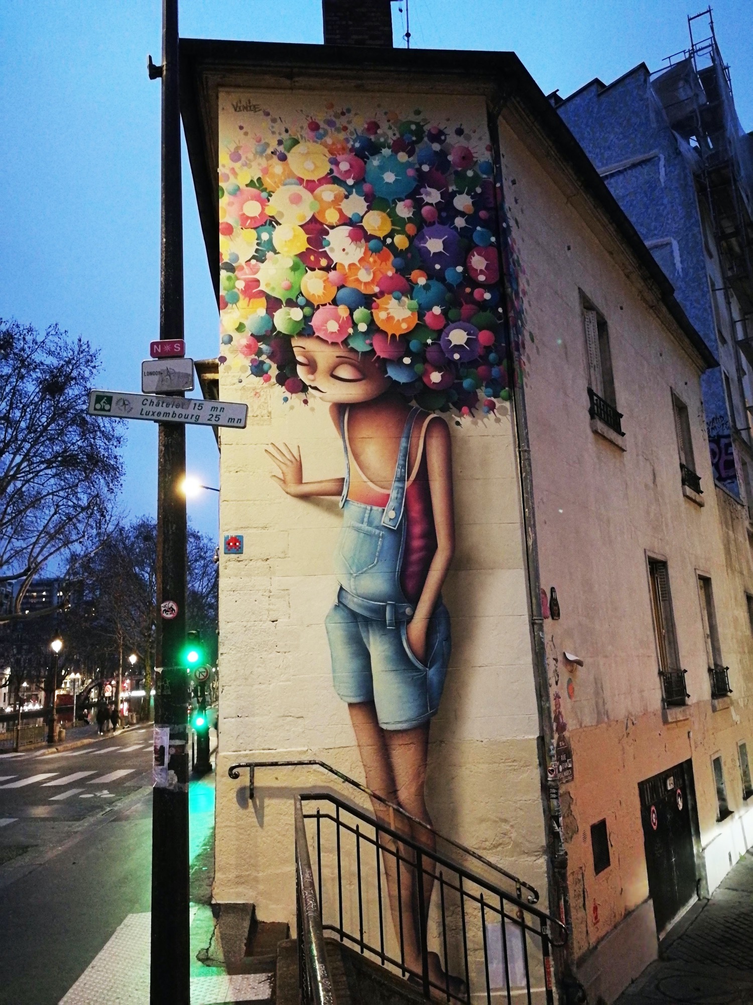 L’oeuvre est de type graffiti. Vous pouvez l’admirer dans la ville de Paris en France et plus précisément ici : 20 Rue des Vinaigriers, 75010 Paris, France.