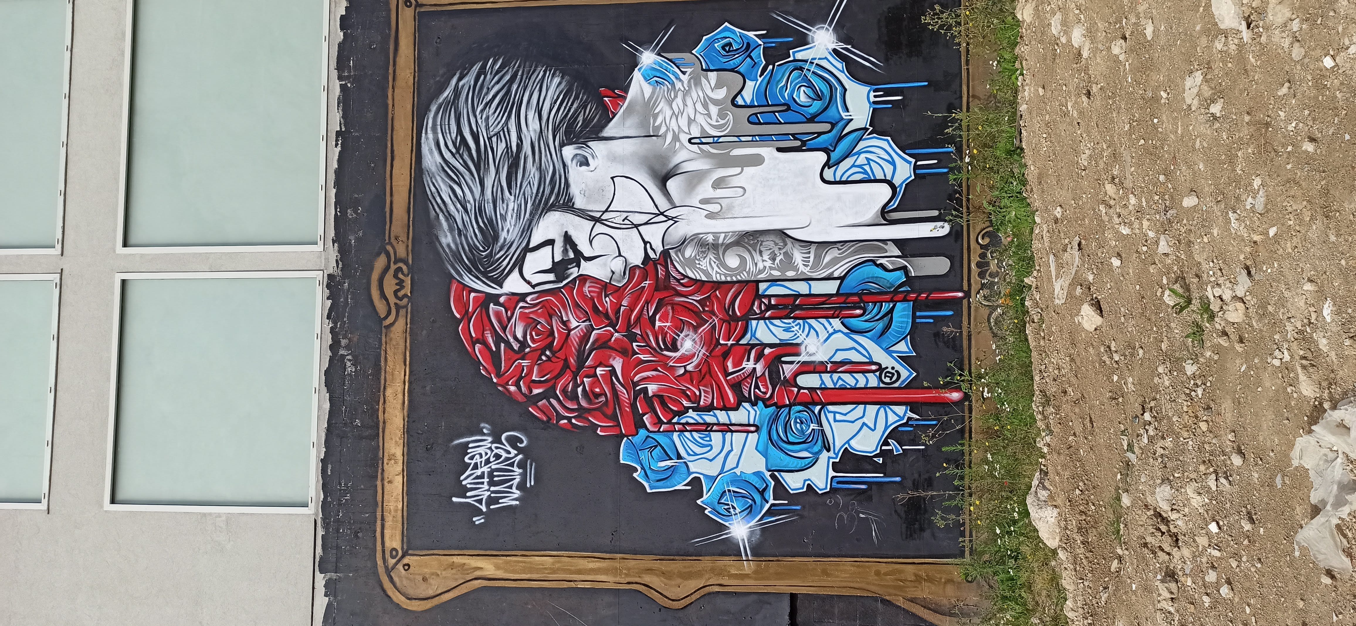 L’oeuvre est de type graffiti. Vous pouvez l’admirer dans la ville de Paris en France et plus précisément ici : 2 Rue Jean-Baptiste Berlier, 75013 Paris, France.