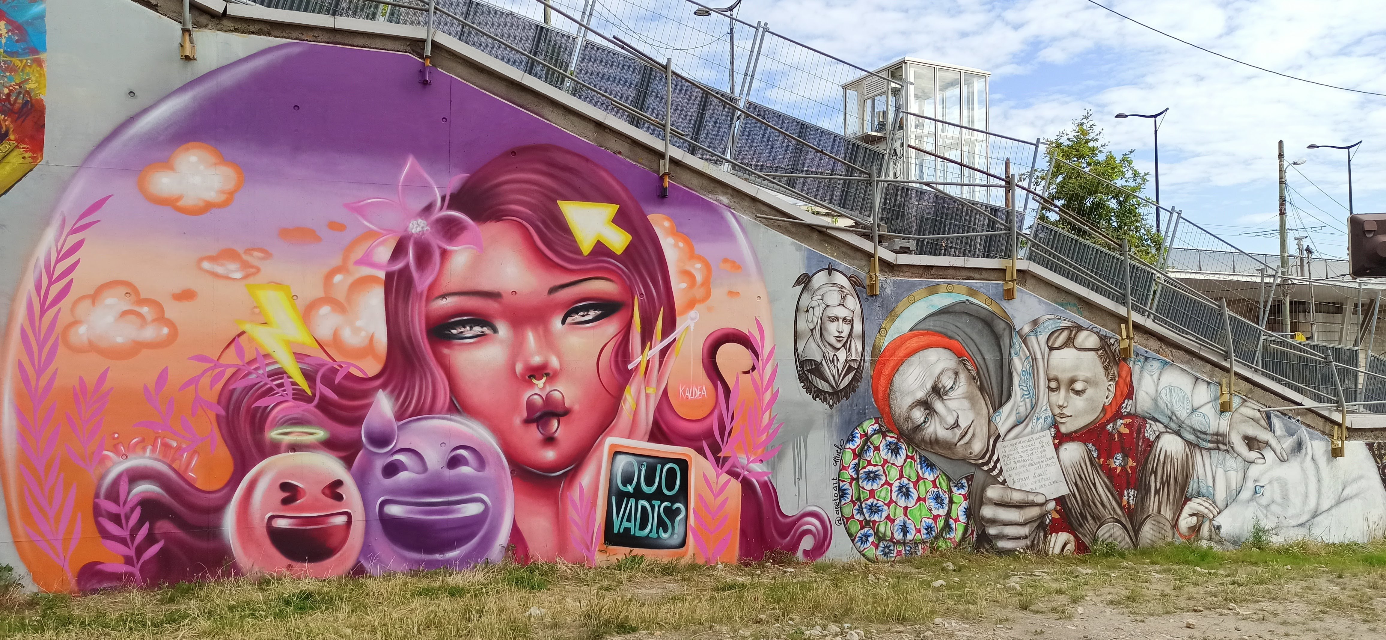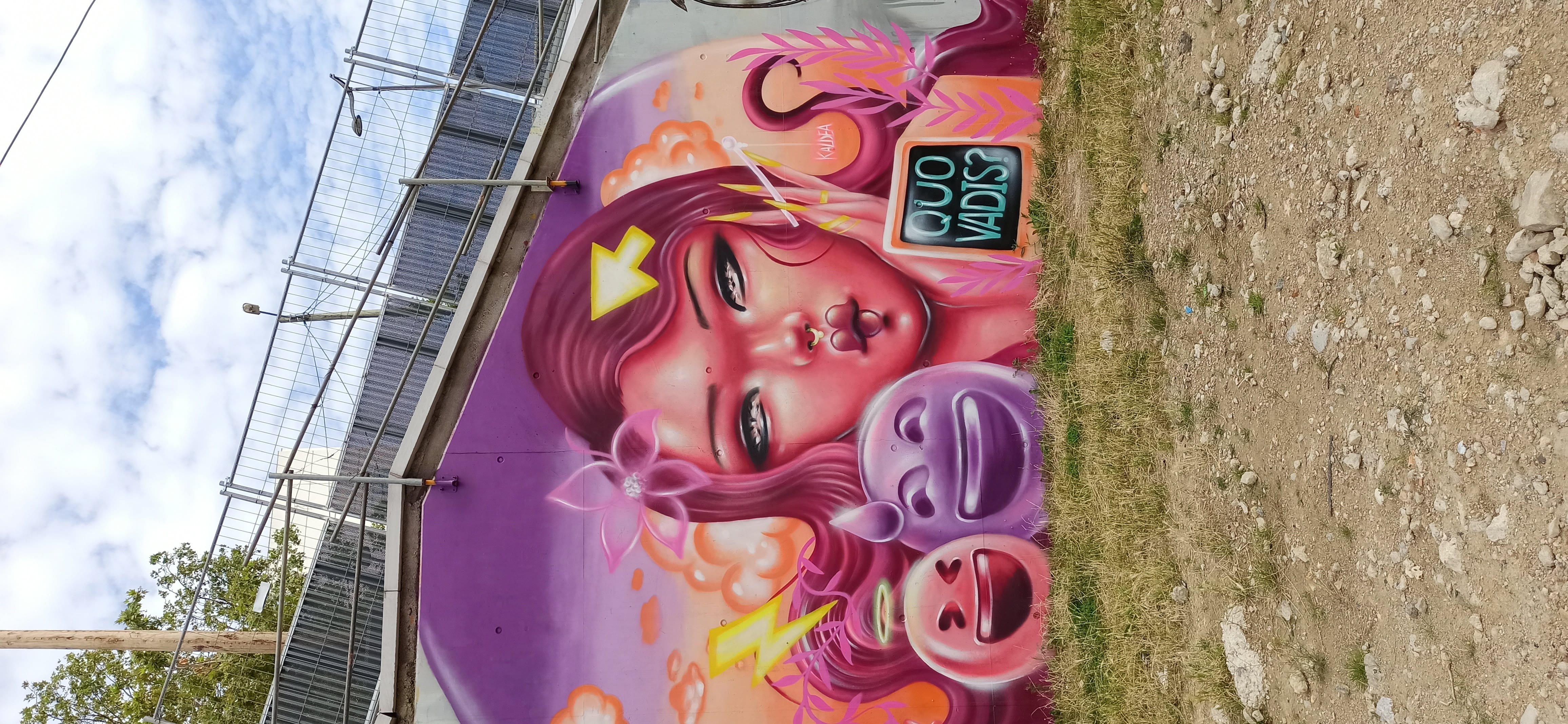 L’oeuvre est de type graffiti. Vous pouvez l’admirer dans la ville de Paris en France et plus précisément ici : 5 Bd du Général d'Armée Jean Simon, 75013 Paris, France.