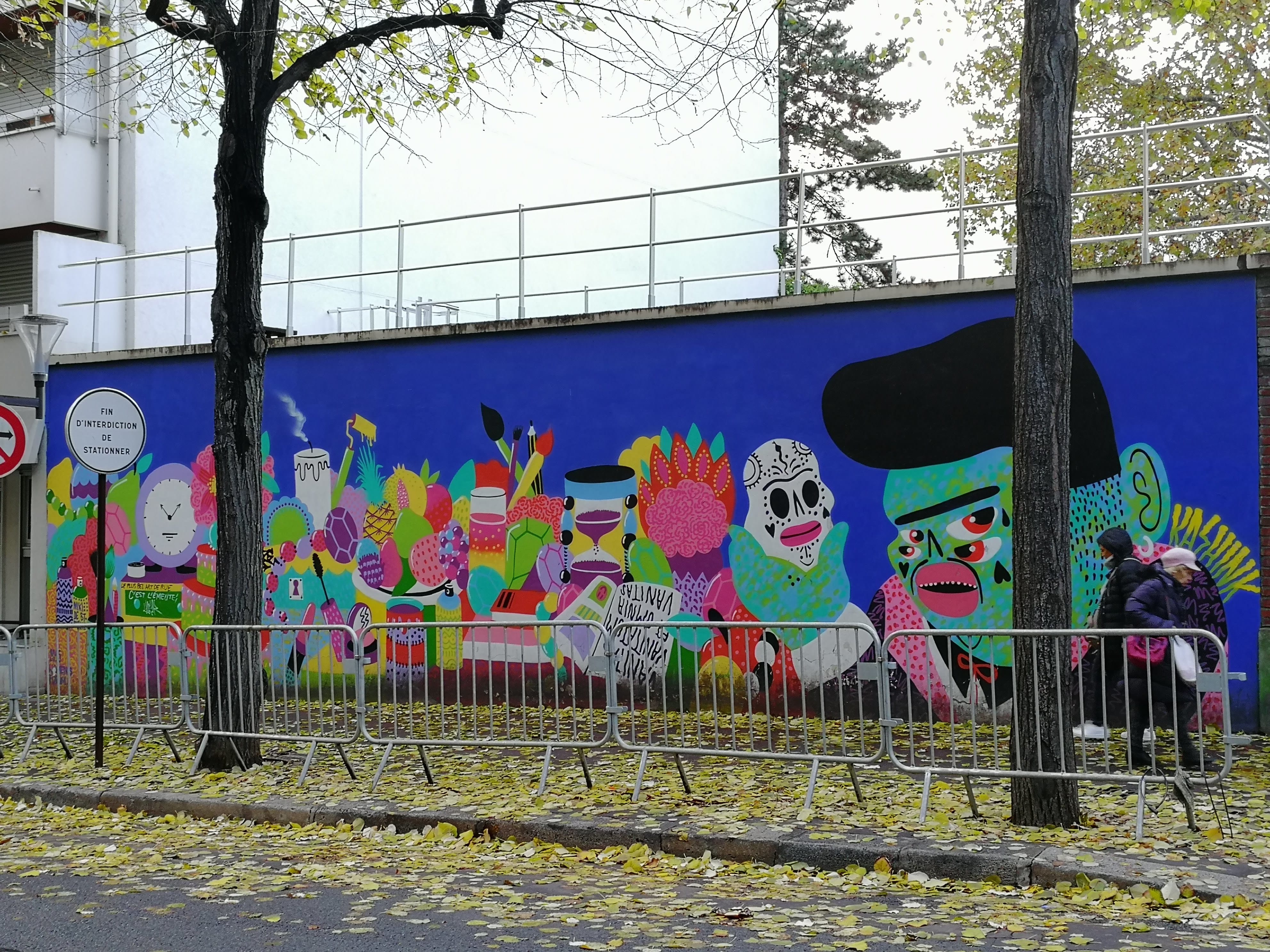 L’oeuvre est de type graffiti. Vous pouvez l’admirer dans la ville de Paris en France et plus précisément ici : 91 Rue Bobillot, 75013 Paris, France.