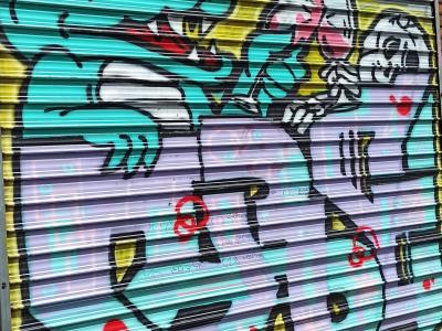 L'oeuvre est de type graffiti. Vous pouvez l'admirer dans la ville de Lille en France et plus précisément ici : 56 Rue des Sarrazins, 59000 Lille, France.
