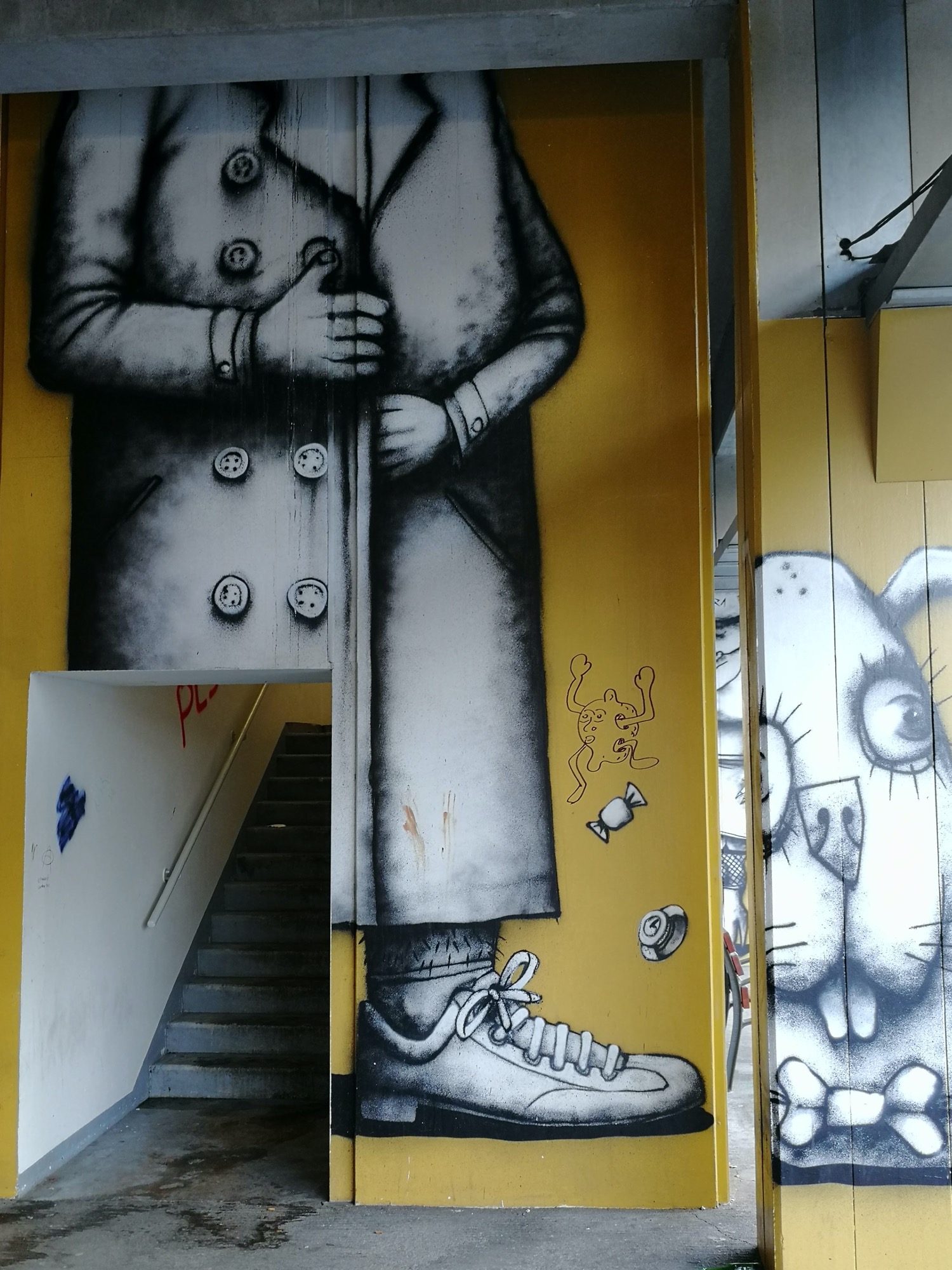 L’oeuvre est de type graffiti. Vous pouvez l’admirer dans la ville de Saint-Herblain en France et plus précisément ici : 151 Route de Vannes, 44800 Saint-Herblain, France.
