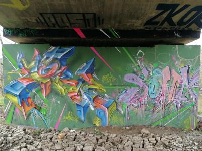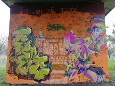 L'oeuvre est de type graffiti. Vous pouvez l'admirer dans la ville de Rezé en France et plus précisément ici : 33 Chemin Bleu, 44400 Rezé, France.