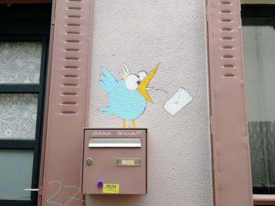 L'oeuvre est de type graffiti. Vous pouvez l'admirer dans la ville de Rezé en France et plus précisément ici : 14 Rue Pascal, 44400 Rezé, France.