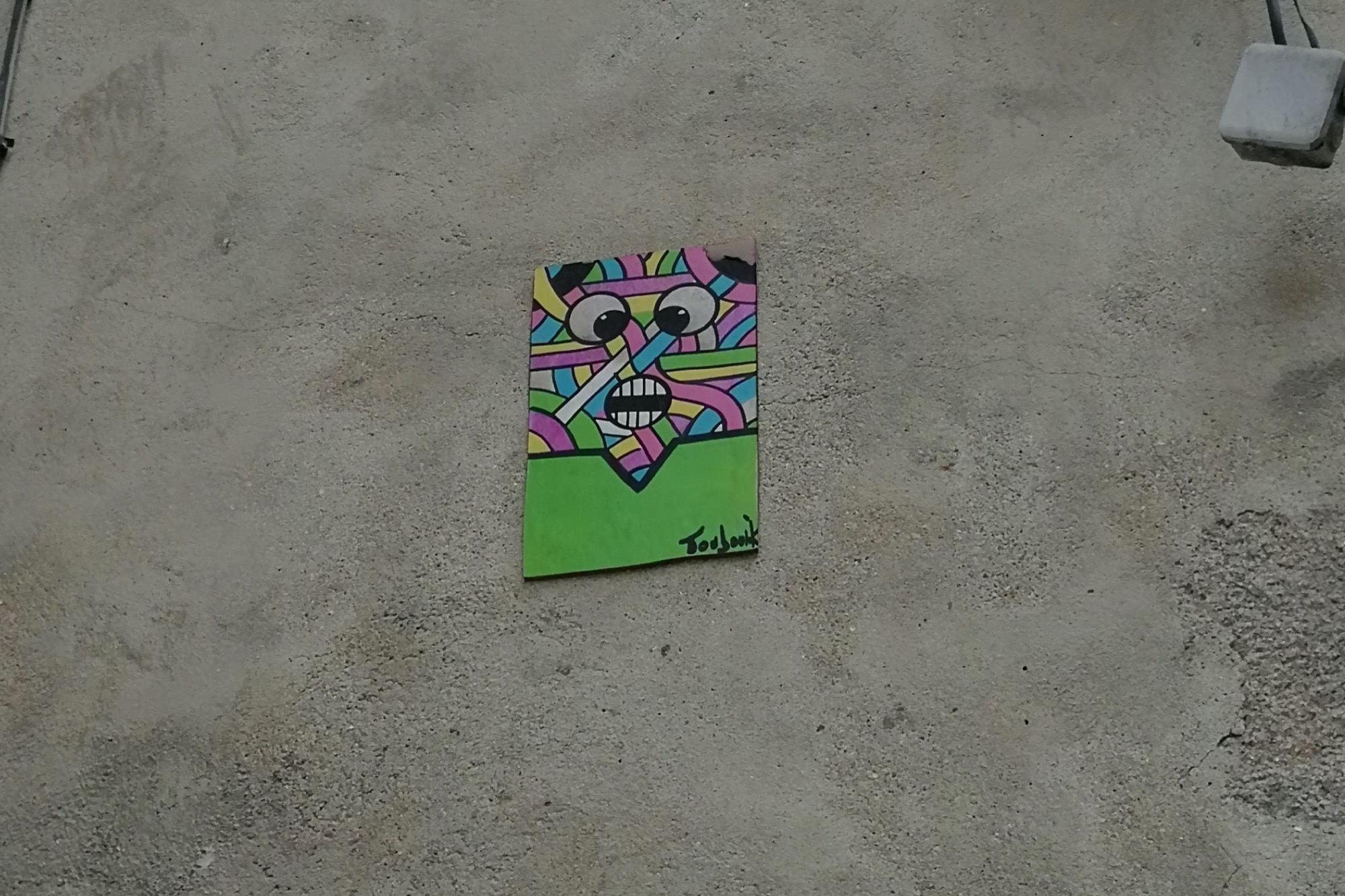 L’oeuvre est de type sticking. Vous pouvez l’admirer dans la ville de Nantes en France et plus précisément ici : 5 Rue des Vieilles Douves, 44000 Nantes, France.