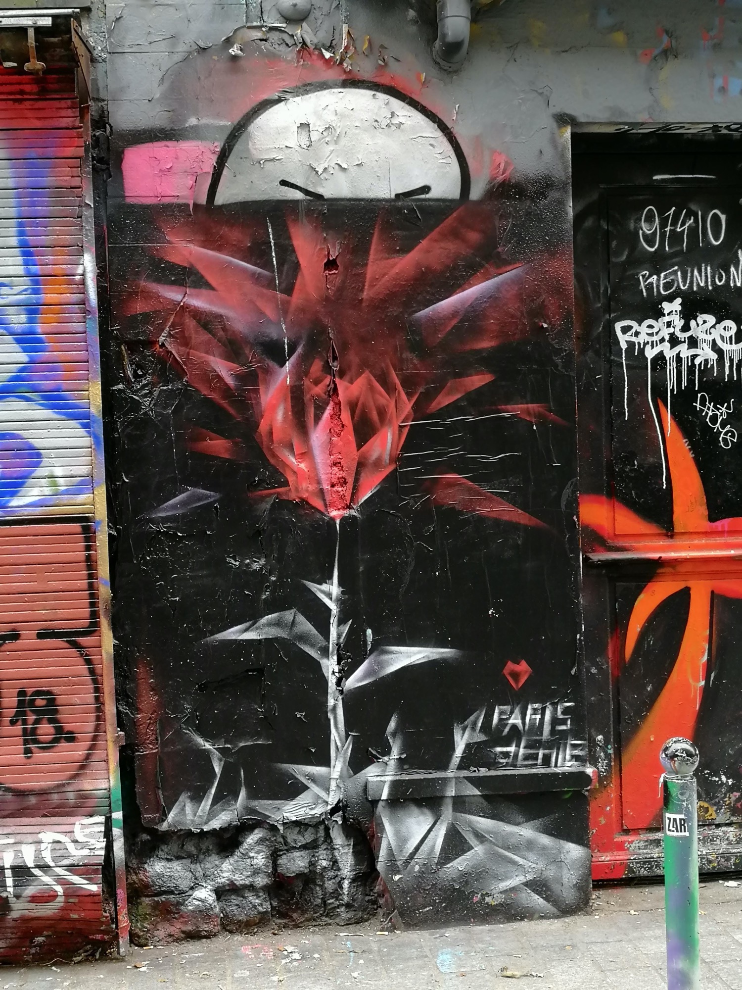 L’oeuvre Rose est de type graffiti. Vous pouvez l’admirer dans la ville de Paris en France et plus précisément ici : 7 Rue Denoyez, 75020 Paris, France.