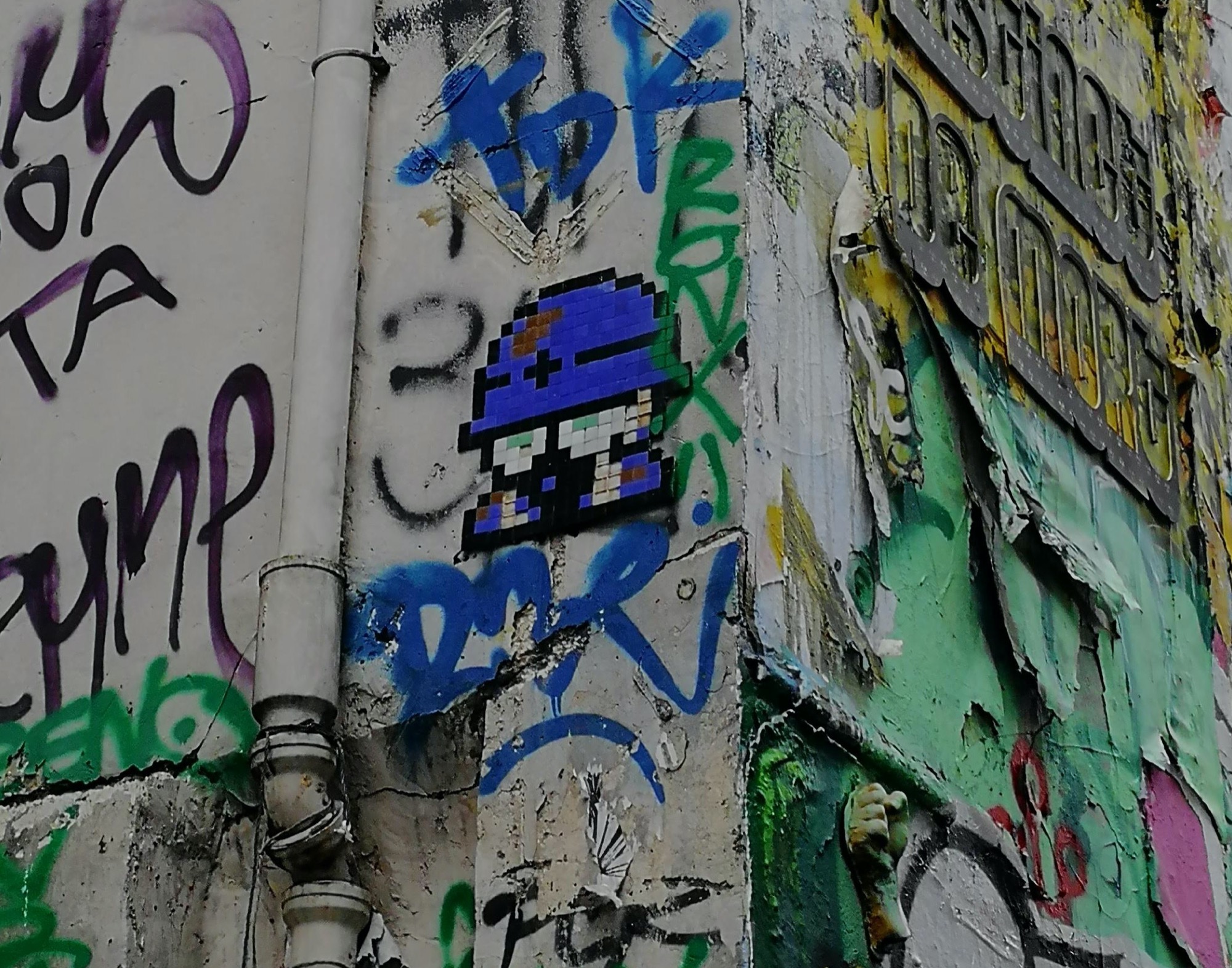 L’oeuvre est de type mosaic. Vous pouvez l’admirer dans la ville de Paris en France et plus précisément ici : 18B Rue Denoyez, 75020 Paris, France.