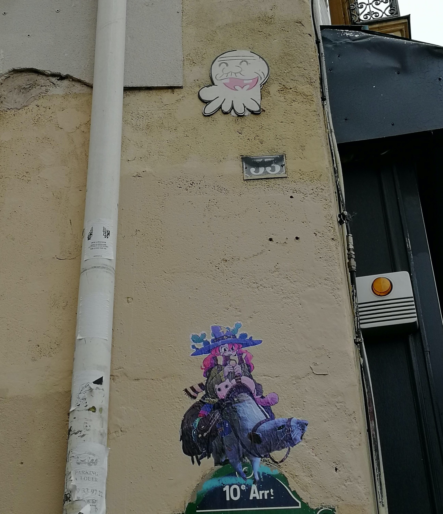 L’oeuvre est de type sticking. Vous pouvez l’admirer dans la ville de Paris en France et plus précisément ici : 1 Avenue Claude Vellefaux, 75010 Paris, France.