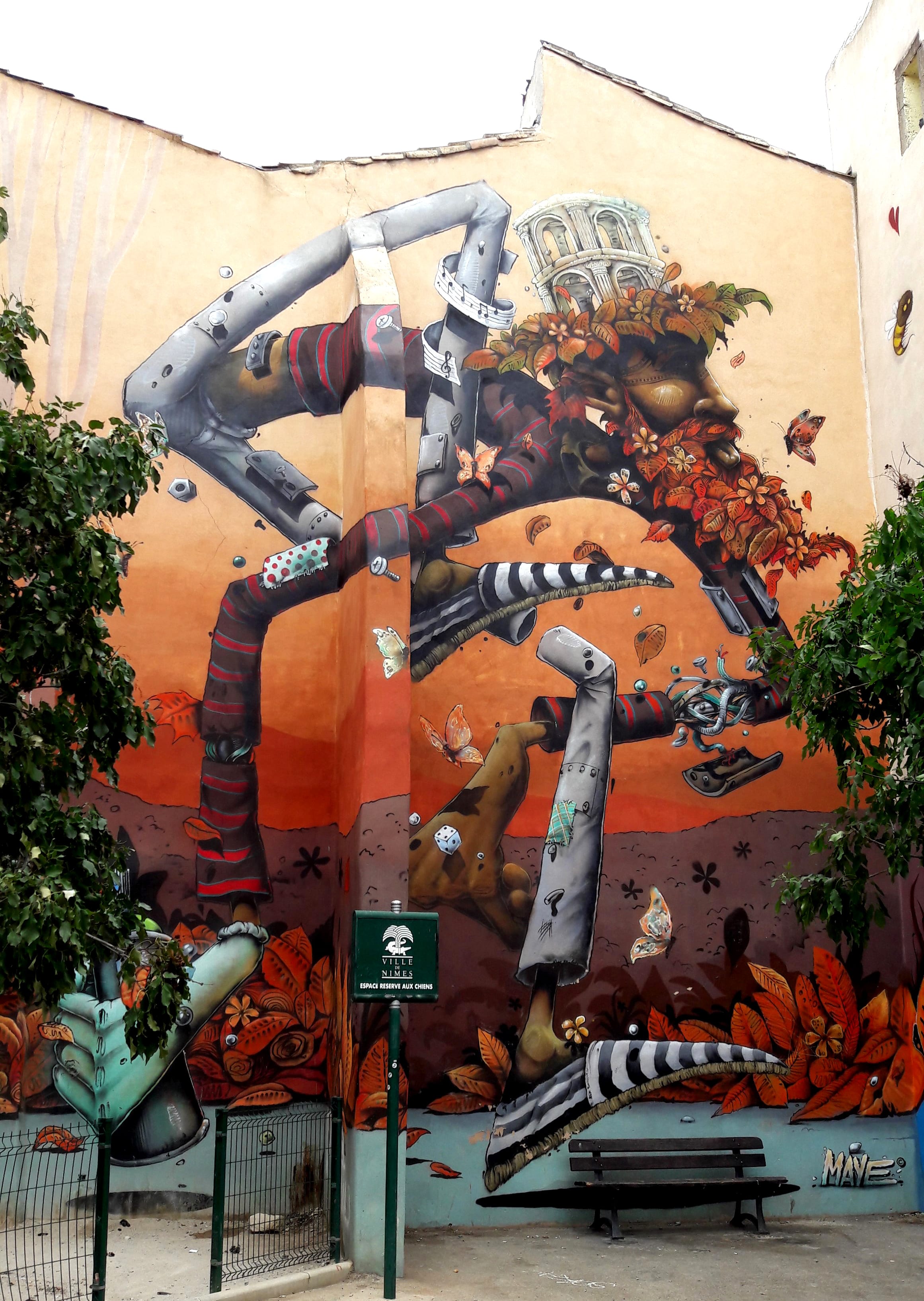 L’oeuvre MAYÉ est de type graffiti. Vous pouvez l’admirer dans la ville de Nîmes en France et plus précisément ici : 7 Rue Robert, 30000 Nîmes, France.