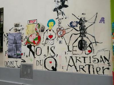 L'oeuvre est de type graffiti. Vous pouvez l'admirer dans la ville de Paris en France et plus précisément ici : 12 Rue Sainte-Marthe, 75010 Paris, France.