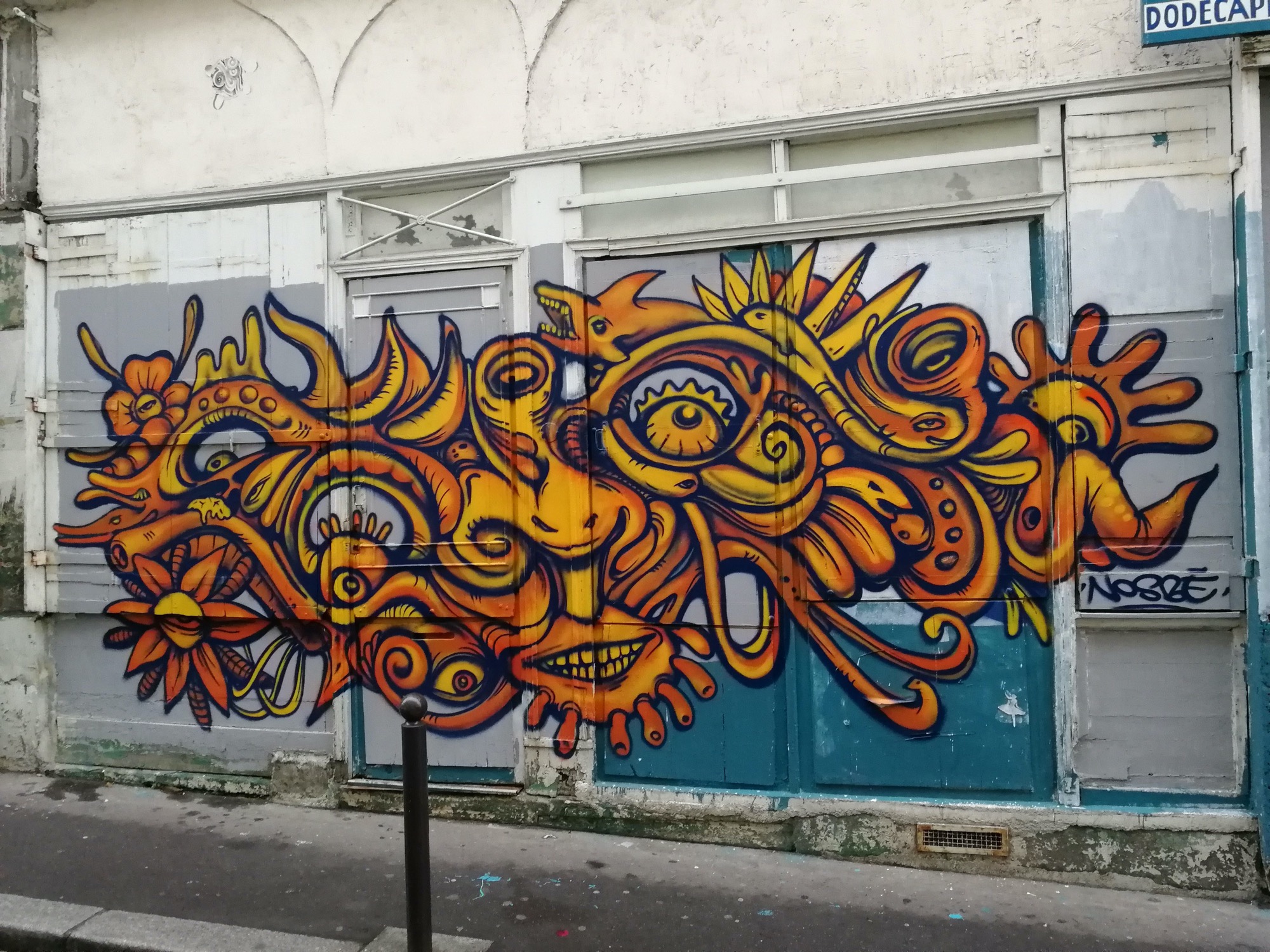 L’oeuvre est de type graffiti. Vous pouvez l’admirer dans la ville de Paris en France et plus précisément ici : 12 Rue Sainte-Marthe, 75010 Paris, France.