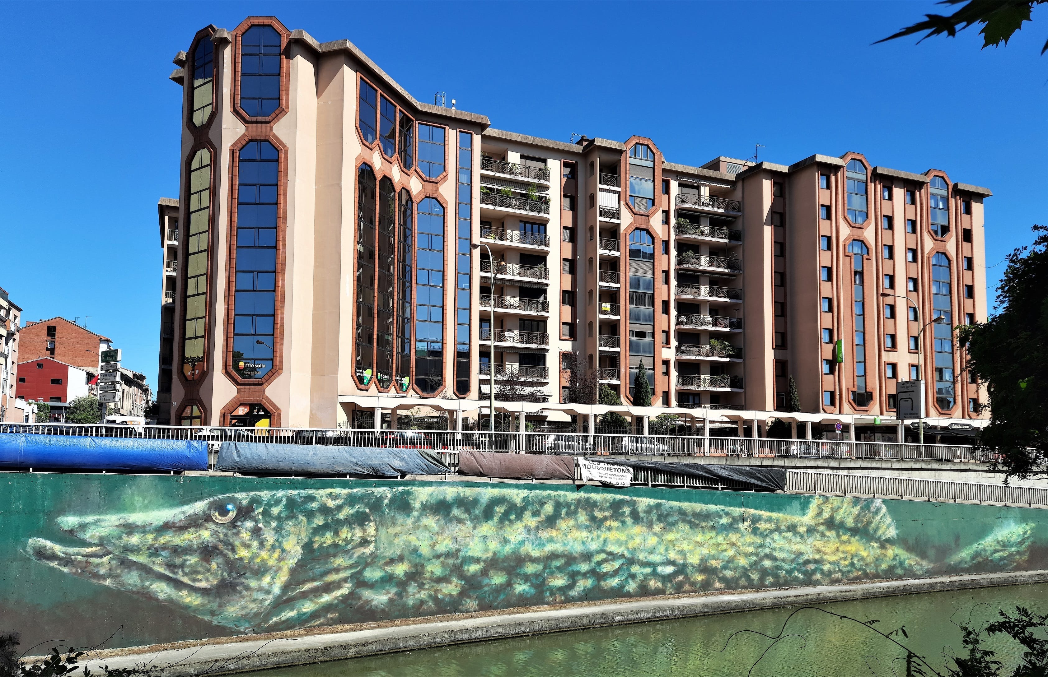 L’oeuvre est de type graffiti. Vous pouvez l’admirer dans la ville de Toulouse en France et plus précisément ici : 4 Bd du Professeur Léopold Escande, 31500 Toulouse, France.