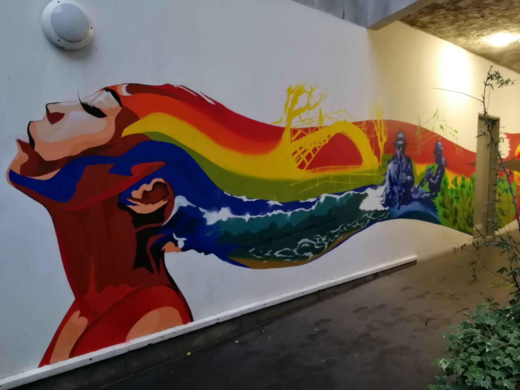 L’oeuvre est de type graffiti. Vous pouvez l’admirer dans la ville de Paris en France et plus précisément ici : 7 Rue du Buisson Saint-Louis, 75010 Paris, France.
