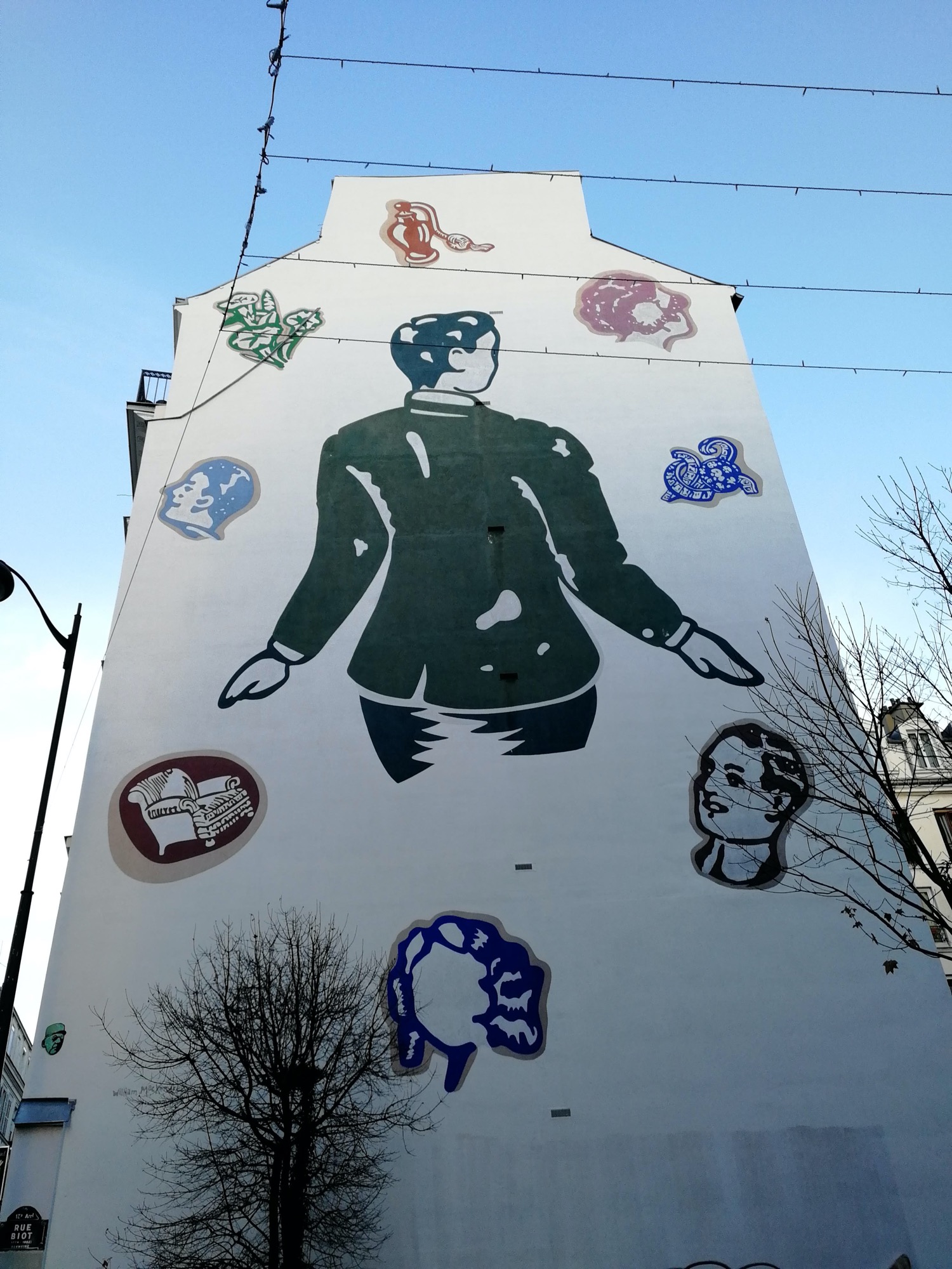 L’oeuvre est de type graffiti. Vous pouvez l’admirer dans la ville de Paris en France et plus précisément ici : 27 Rue Biot, 75017 Paris, France.