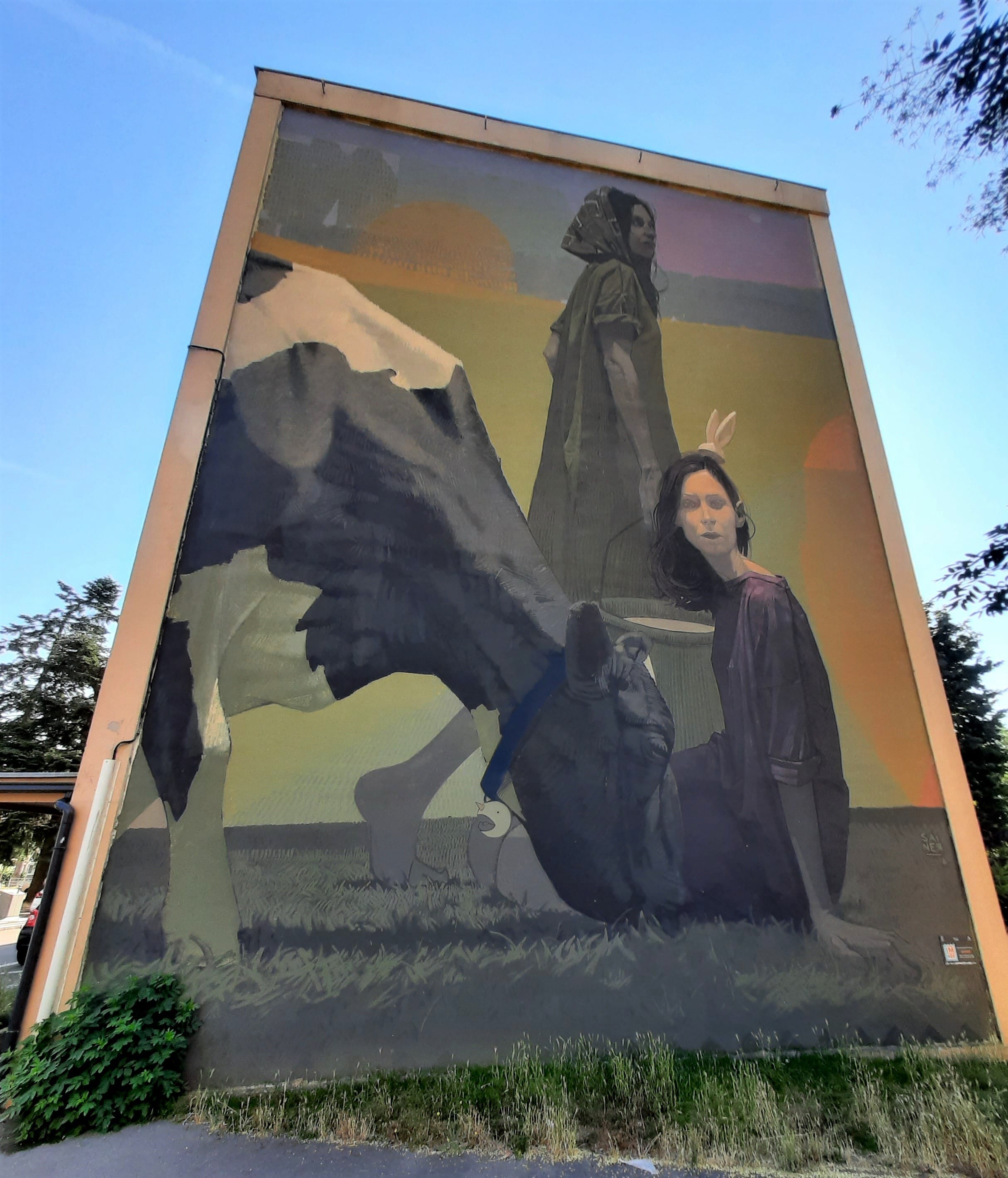 L’oeuvre est de type graffiti. Vous pouvez l’admirer dans la ville de Rouen en France et plus précisément ici : 7 All. d'Isigny, 76000 Rouen, France.