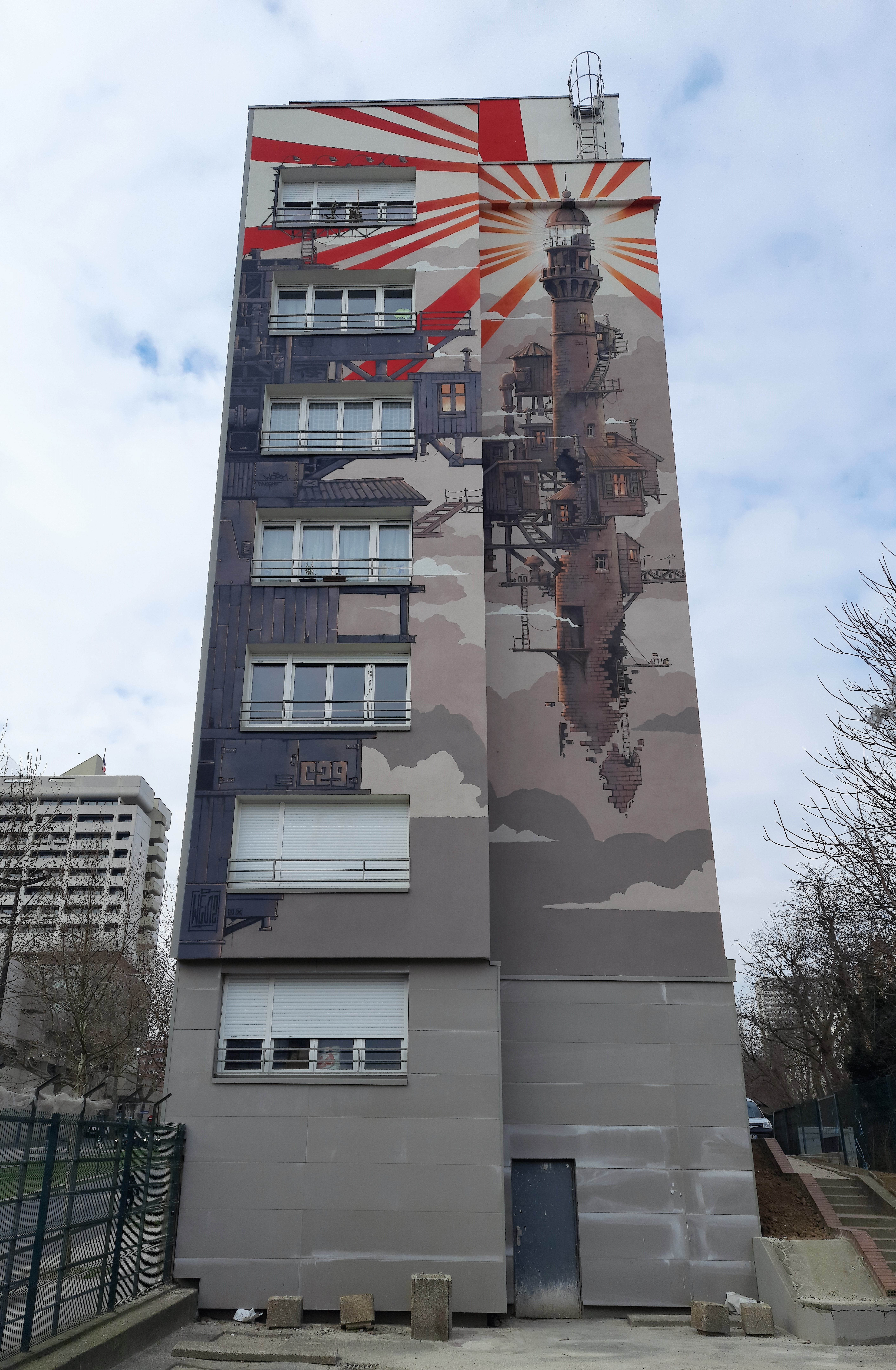 L’oeuvre est de type graffiti. Vous pouvez l’admirer dans la ville de Paris en France et plus précisément ici : 10 Bd Masséna, 75013 Paris, France.