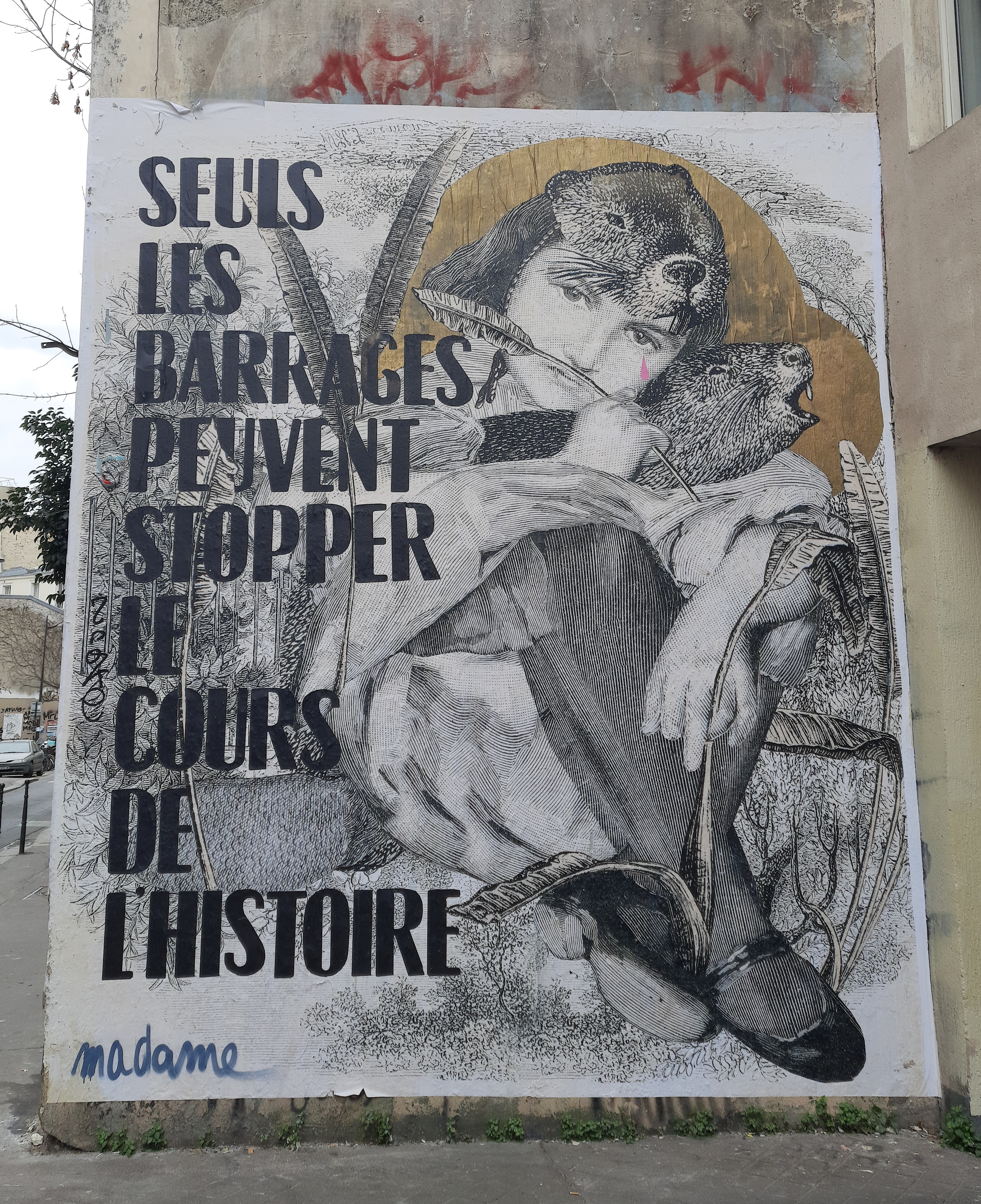 L’oeuvre est de type sticking. Vous pouvez l’admirer dans la ville de Paris en France et plus précisément ici : 34 Rue de la Mare, 75020 Paris, France.