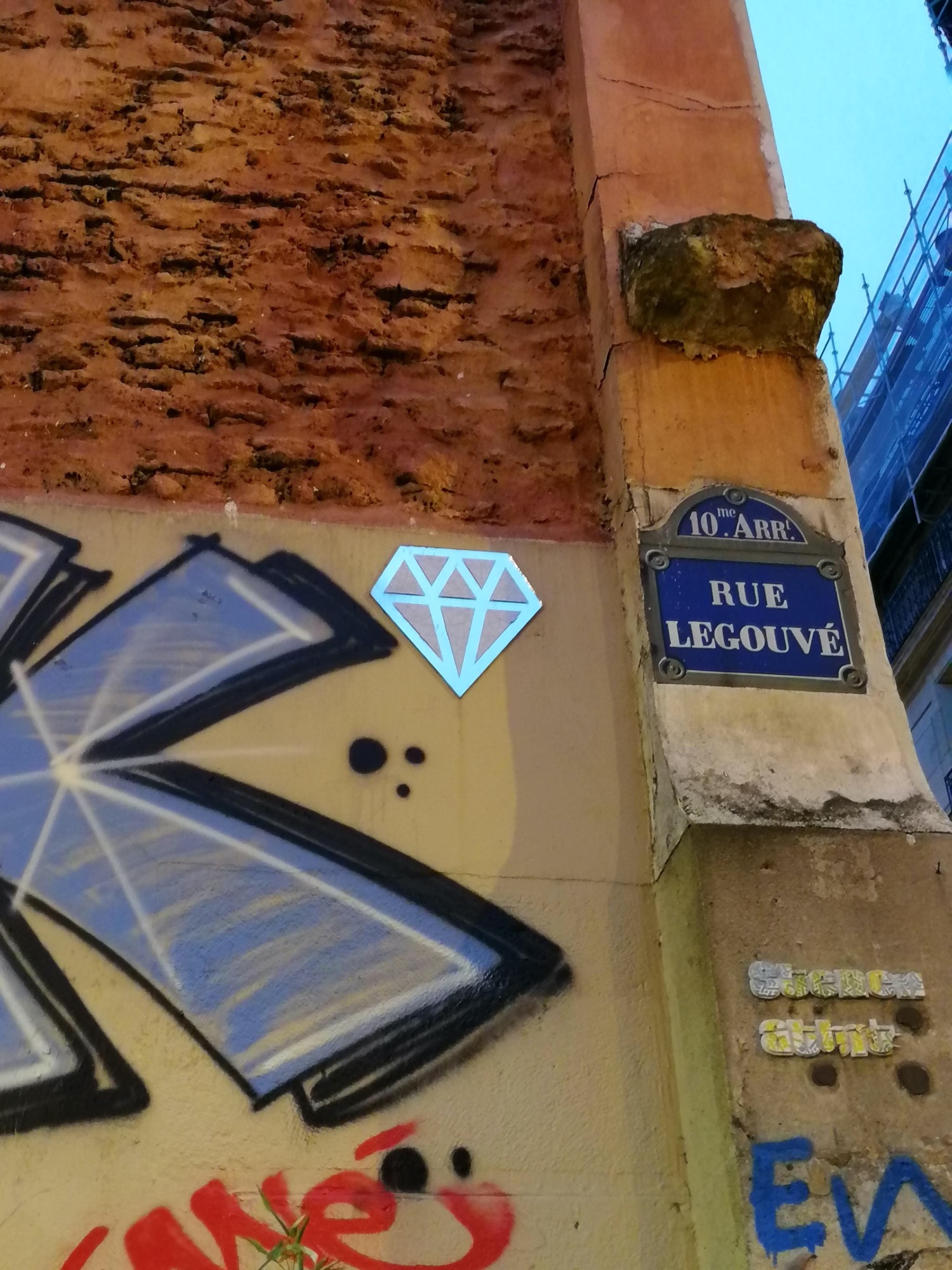 L’oeuvre est de type sticking. Vous pouvez l’admirer dans la ville de Paris en France et plus précisément ici : 28 Rue Legouvé, 75010 Paris, France.