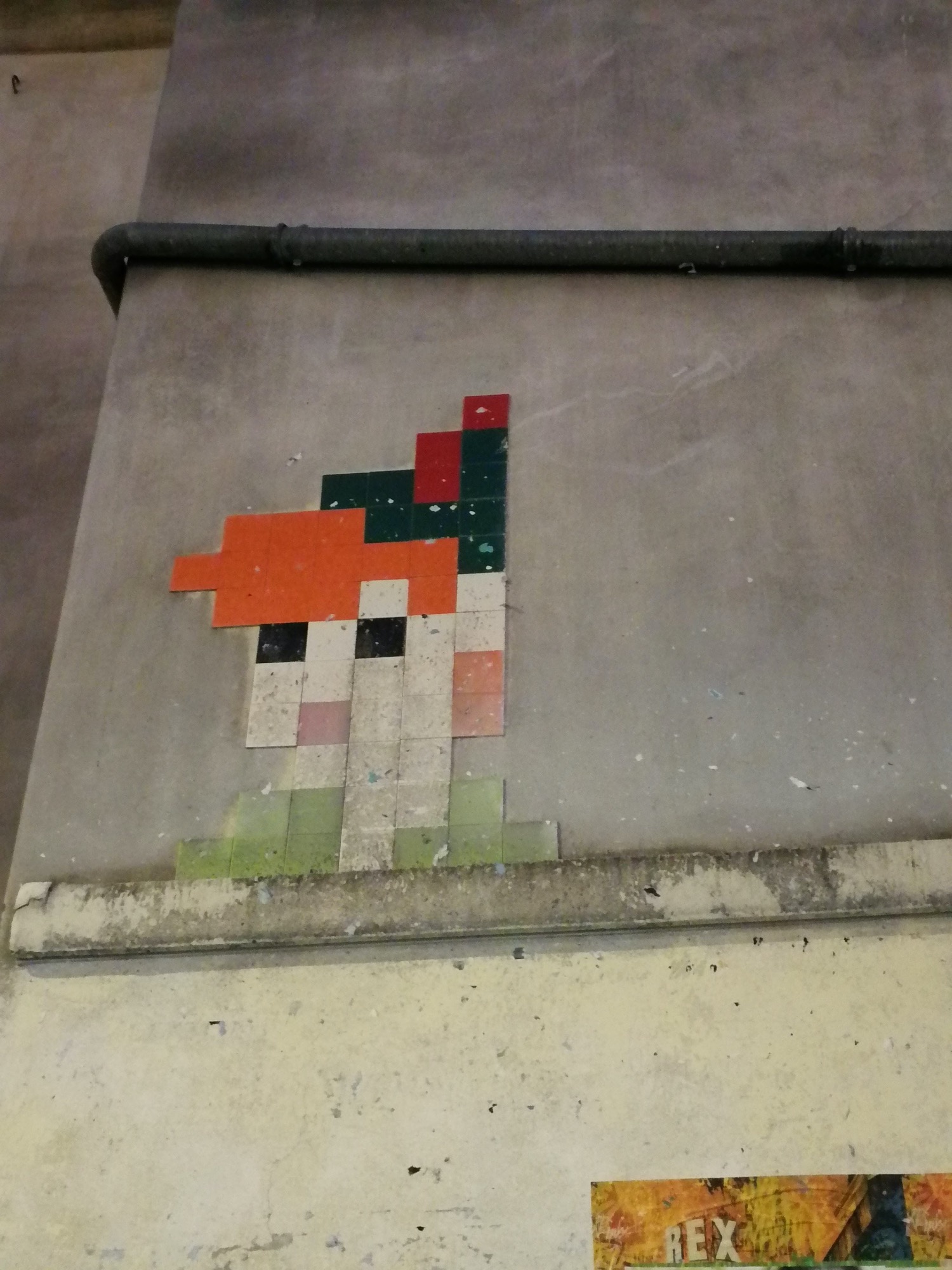 L’oeuvre est de type mosaic. Vous pouvez l’admirer dans la ville de Paris en France et plus précisément ici : 148 Rue du Faubourg Saint-Martin, 75010 Paris, France.