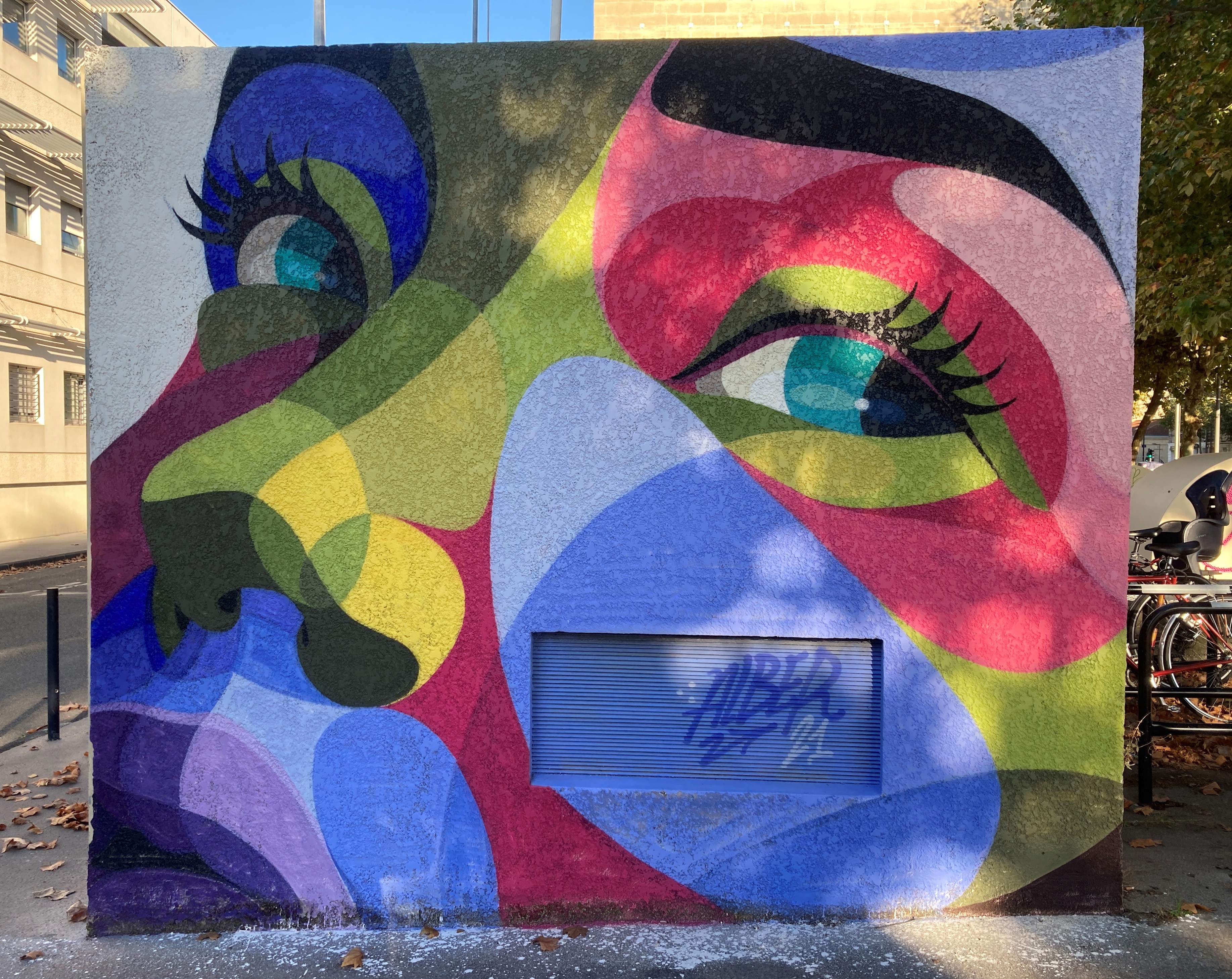 L’oeuvre est de type graffiti. Vous pouvez l’admirer dans la ville de Bordeaux en France et plus précisément ici : 115 Rue Joseph Abria, 33000 Bordeaux, France.