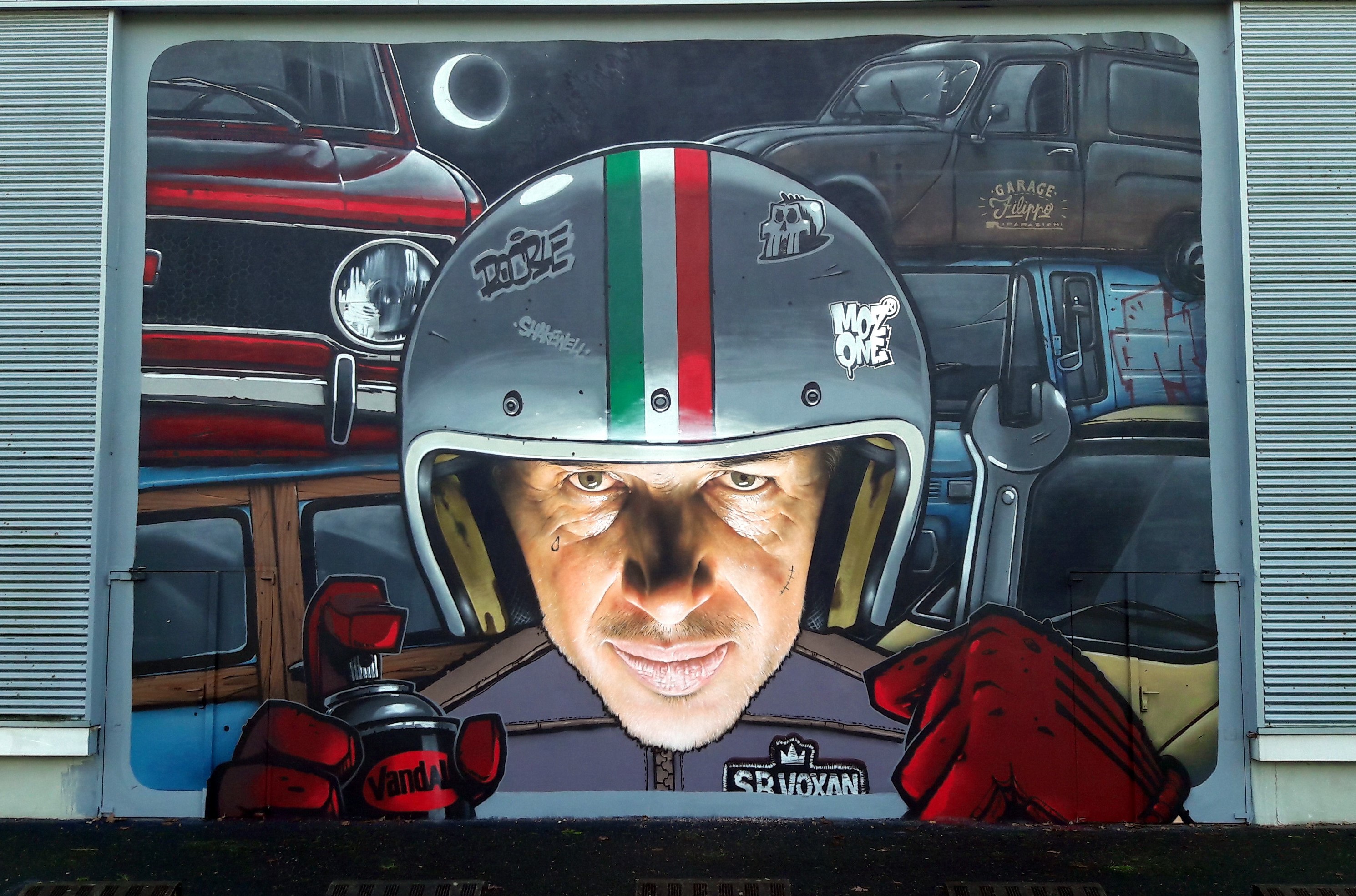L’oeuvre est de type graffiti. Vous pouvez l’admirer dans la ville de Pessac en France et plus précisément ici : Q9VM+VV Pessac, France.