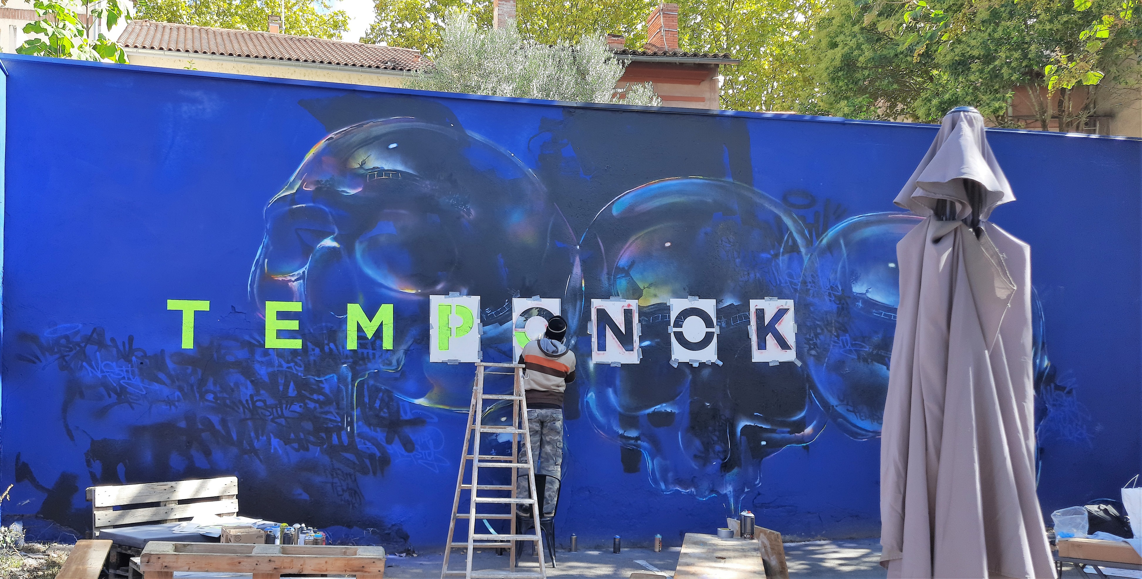 L’oeuvre est de type graffiti. Vous pouvez l’admirer dans la ville de Toulouse en France et plus précisément ici : 4 All. Charles de Fitte, 31300 Toulouse, France.