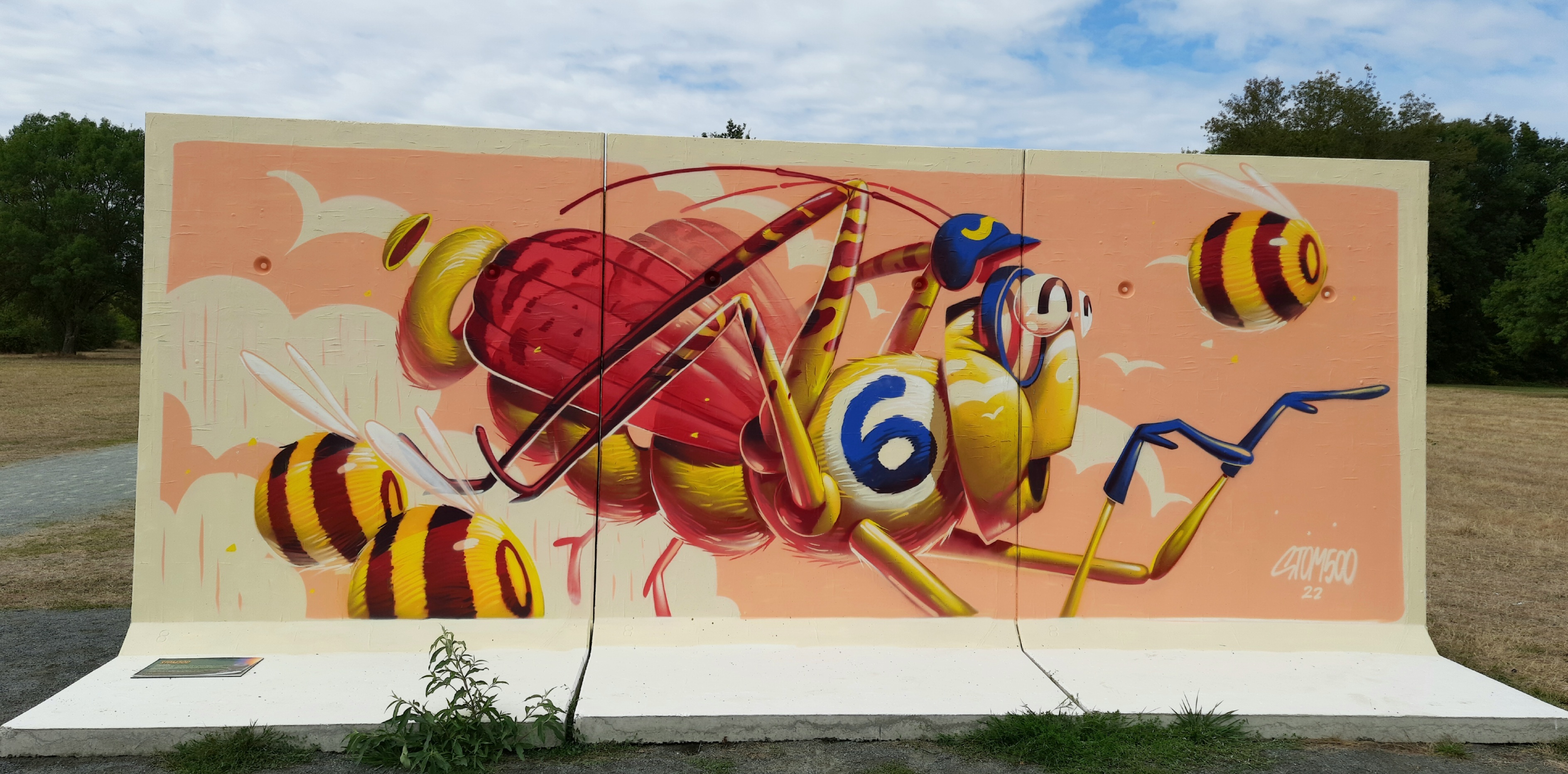 L’oeuvre est de type graffiti. Vous pouvez l’admirer dans la ville de Le Mans en France et plus précisément ici : Gué de Maulny, 54 Rue des Batignolles, 72100 Le Mans, France.