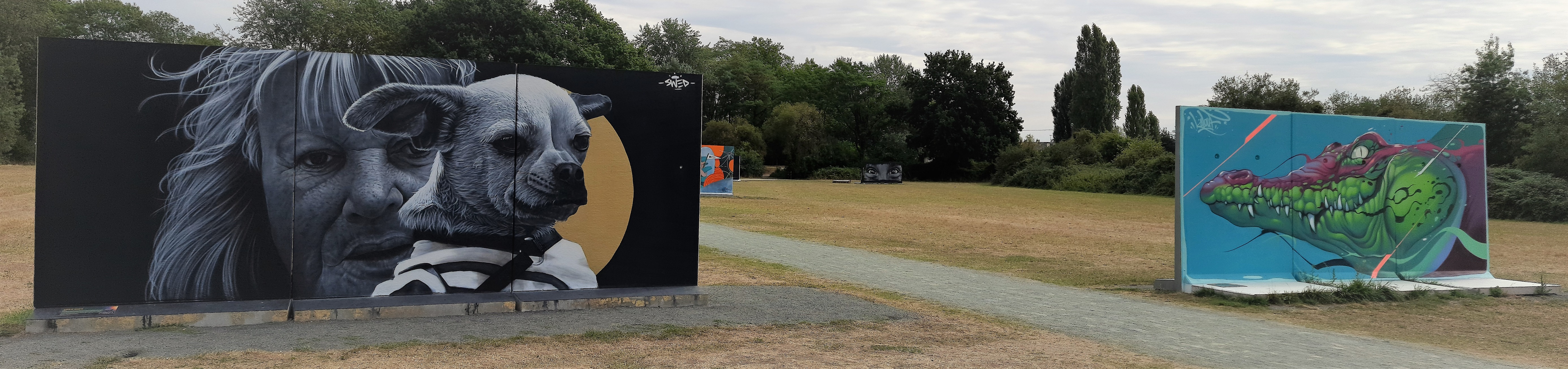 L’oeuvre est de type graffiti. Vous pouvez l’admirer dans la ville de Le Mans en France et plus précisément ici : Gué de Maulny, 54 Rue des Batignolles, 72100 Le Mans, France.