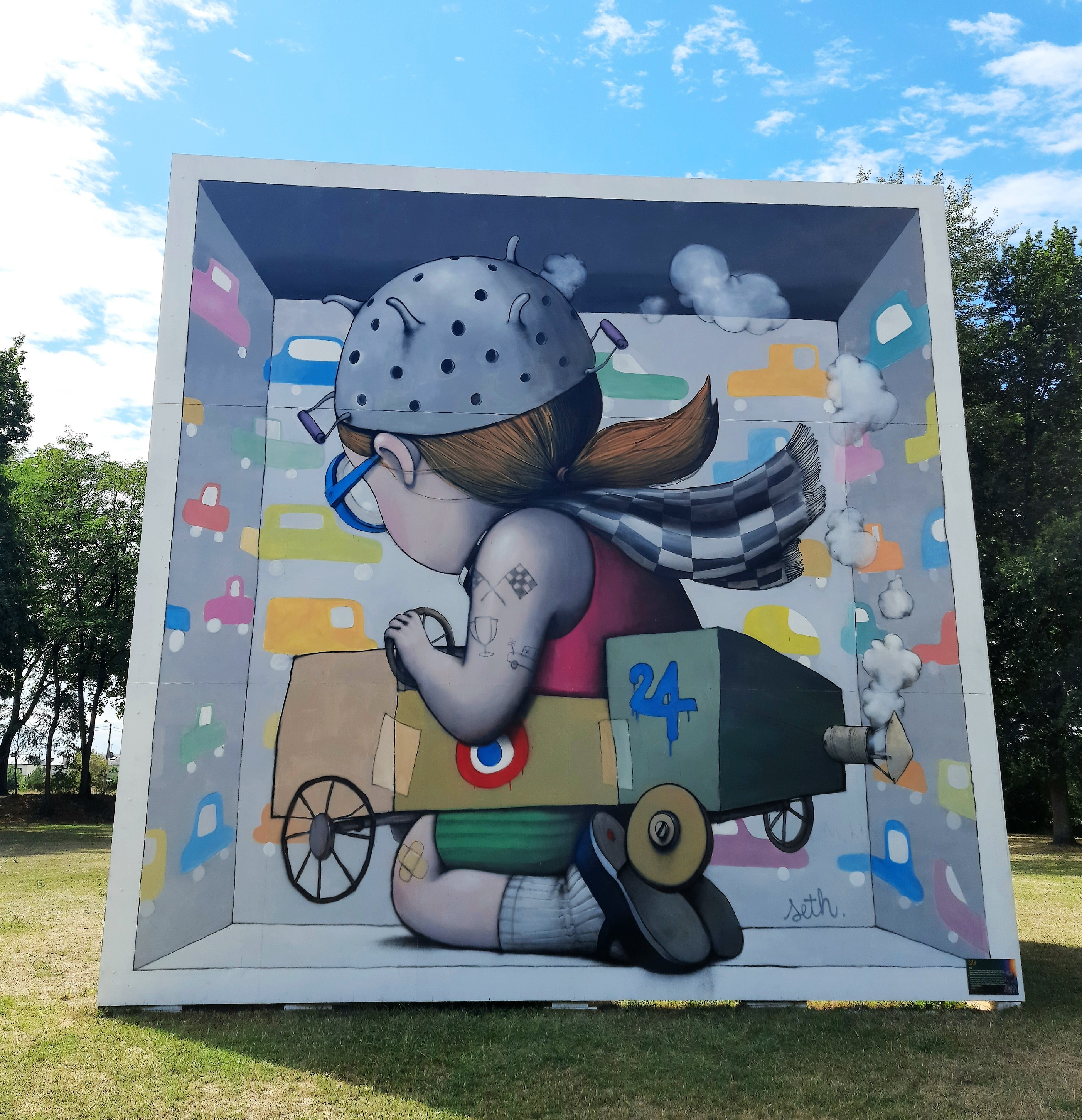 L’oeuvre est de type graffiti. Vous pouvez l’admirer dans la ville de Le Mans en France et plus précisément ici : 54 Rue des Batignolles, 72100 Le Mans, France.