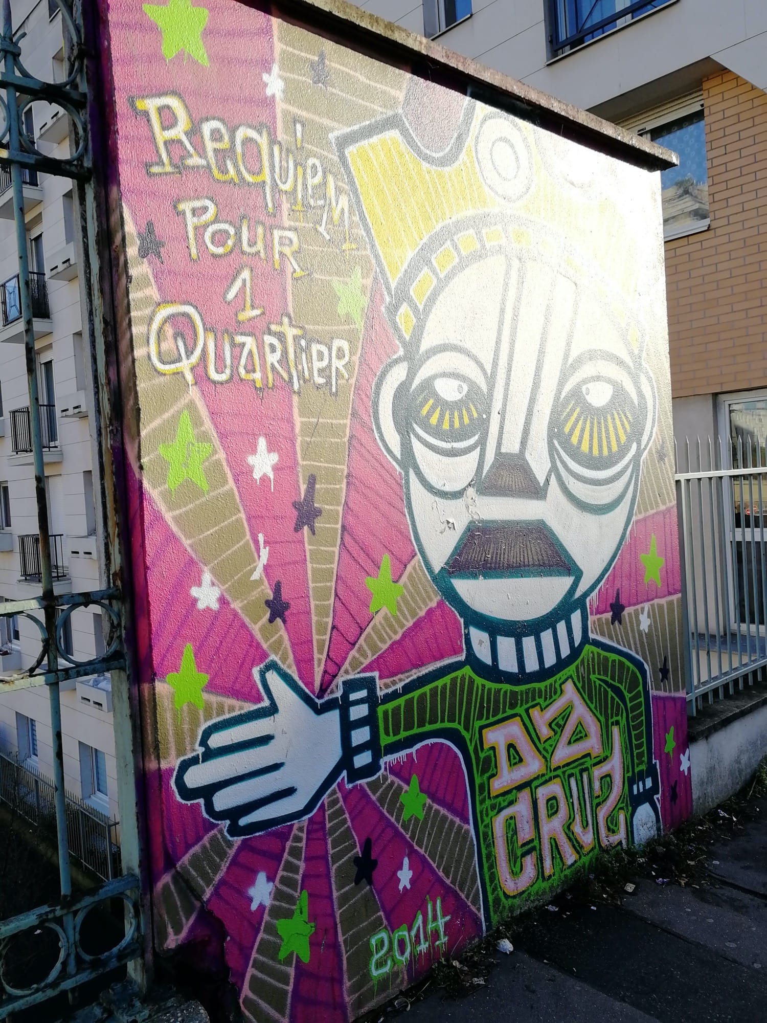 L’oeuvre est de type graffiti. Vous pouvez l’admirer dans la ville de Paris en France et plus précisément ici : 24 Rue de l'Ourcq, 75019 Paris, France.