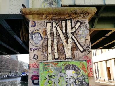 L'oeuvre est de type graffiti. Vous pouvez l'admirer dans la ville de Paris en France et plus précisément ici : Passerelle des Ardennes, 24a Rue de l'Ourcq, 75019 Paris, France.