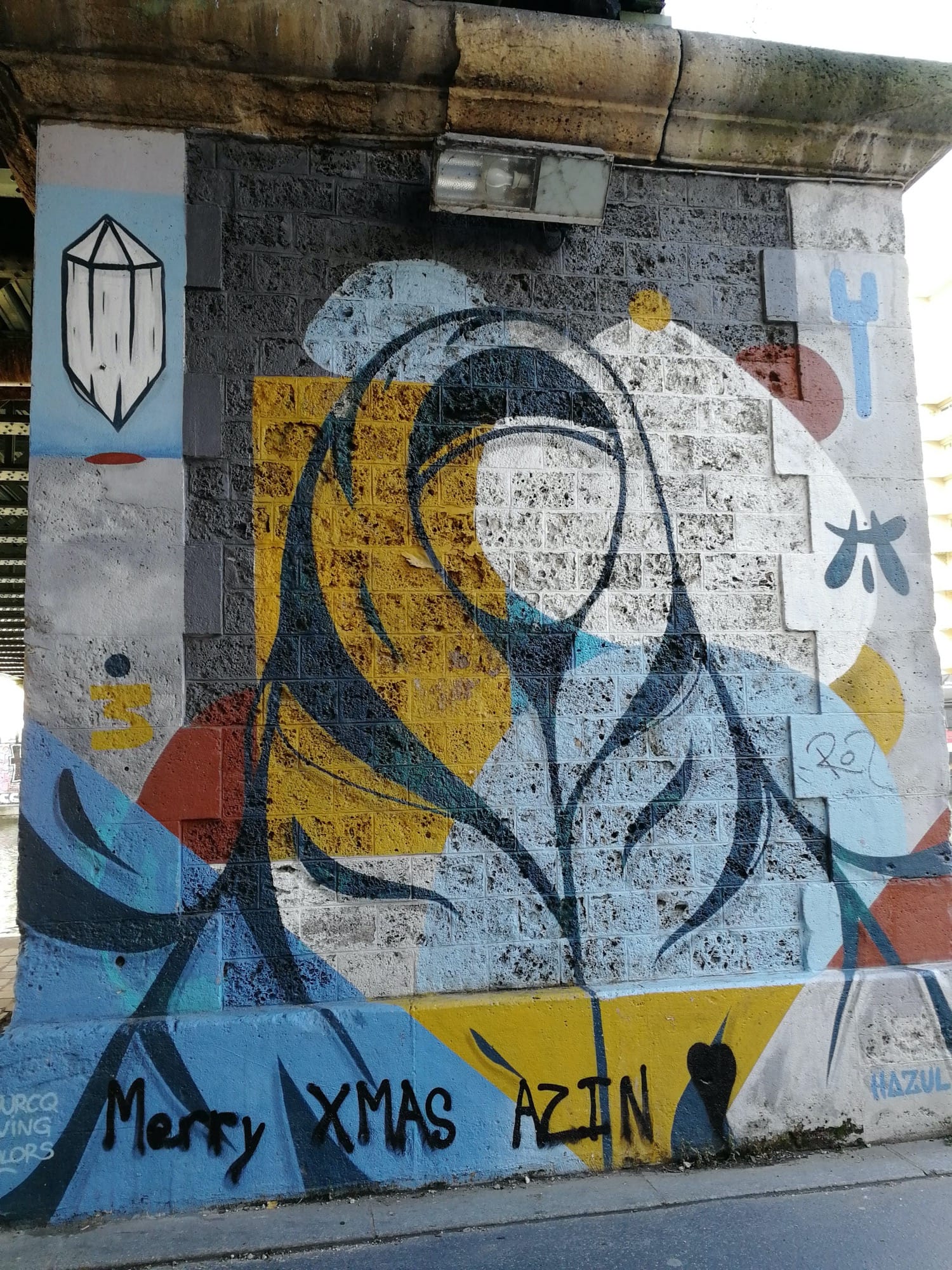 L’oeuvre est de type graffiti. Vous pouvez l’admirer dans la ville de Paris en France et plus précisément ici : 24a Rue de l'Ourcq, 75019 Paris, France.