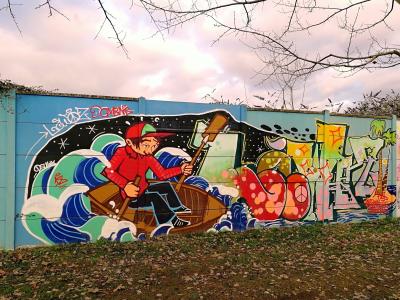 L'oeuvre est de type graffiti. Vous pouvez l'admirer dans la ville de Bordeaux en France et plus précisément ici : 21 Parc d'Activités des Queyries, 33100 Bordeaux, France.