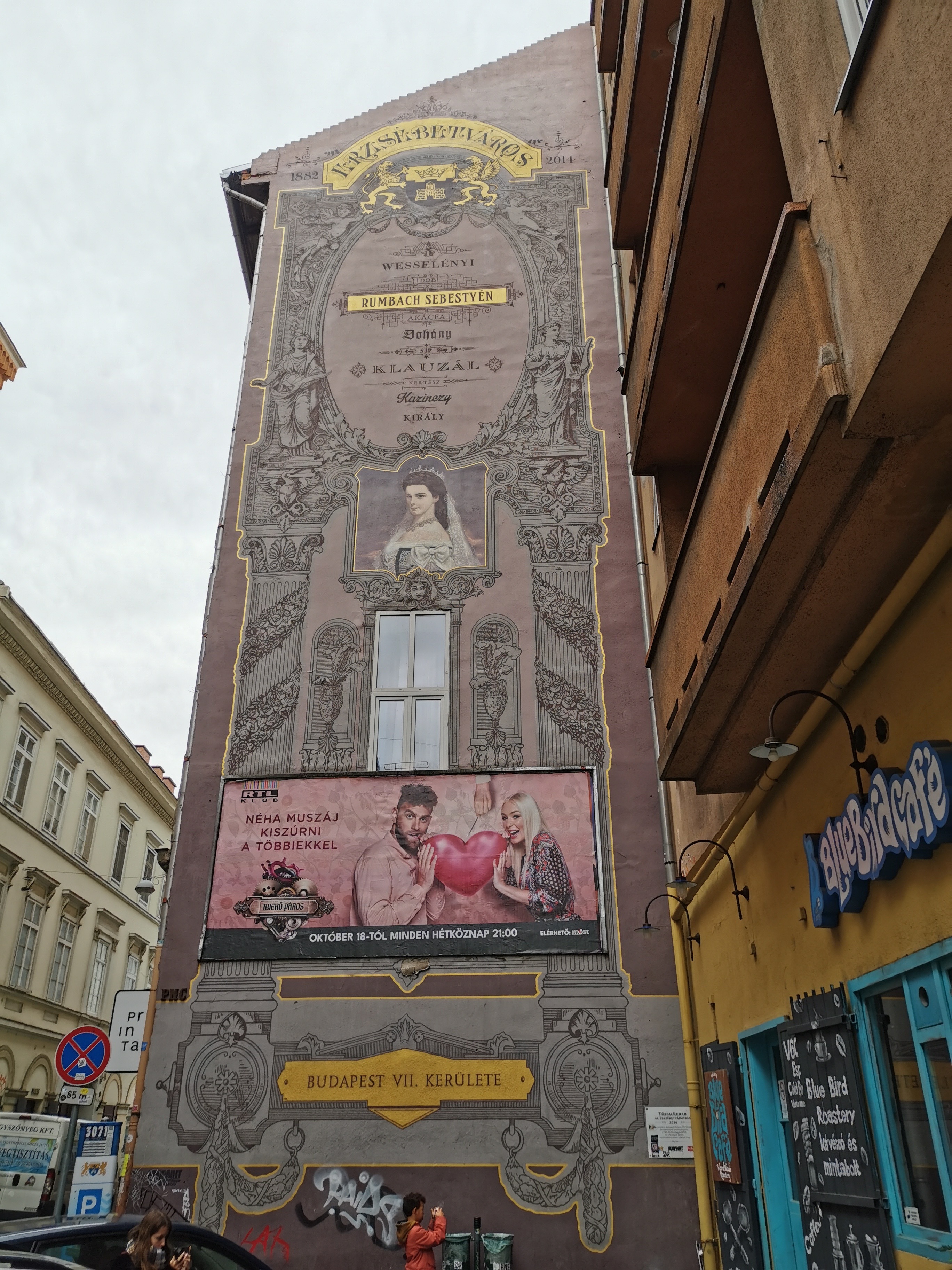 L’oeuvre est de type graffiti. Vous pouvez l’admirer dans la ville de Budapest en Hungary et plus précisément ici : Budapest, Rumbach Sebestyén u. 9, 1075 Hungary.