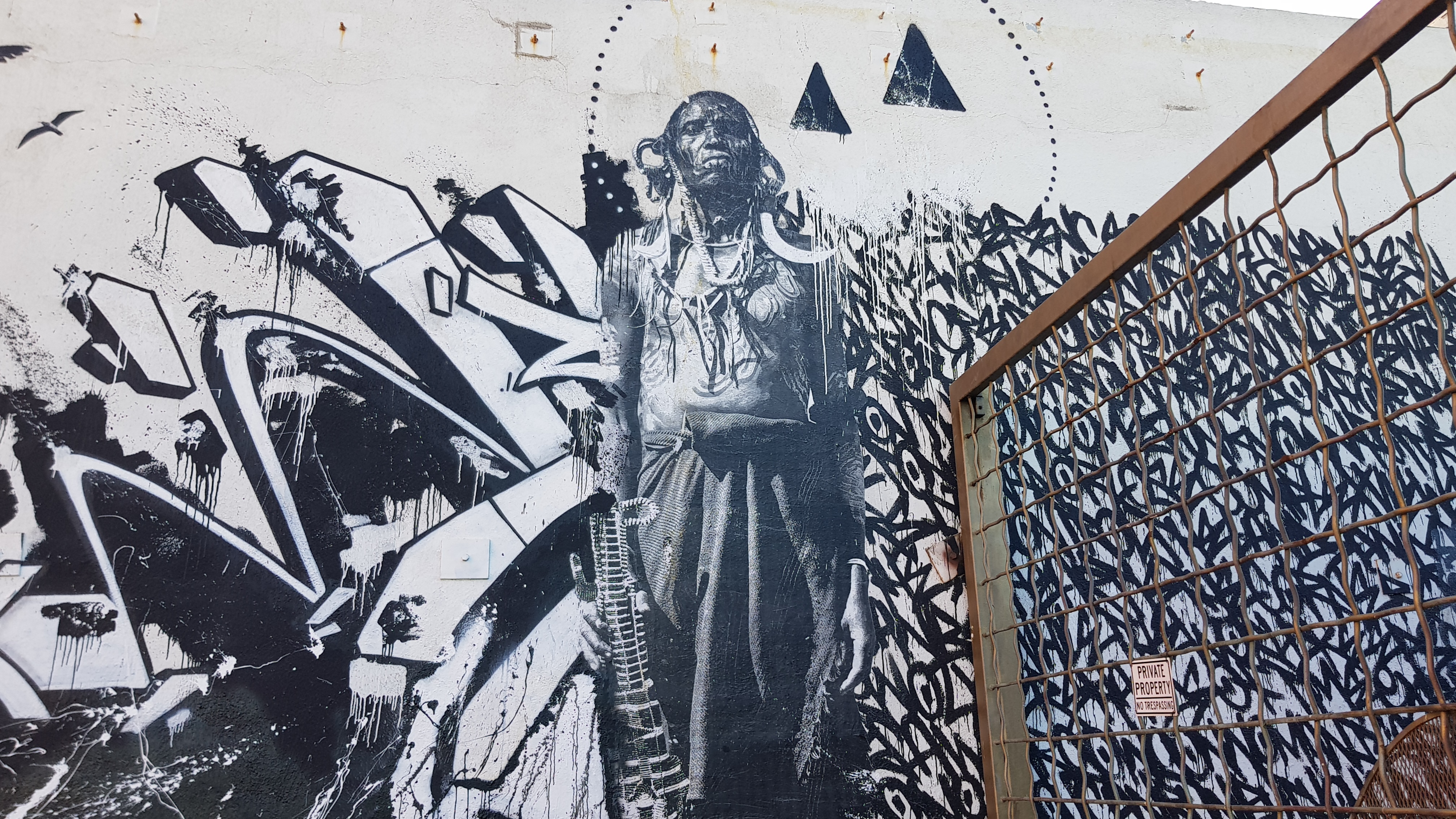 L’oeuvre est de type graffiti. Vous pouvez l’admirer dans la ville de Los Angeles en United States et plus précisément ici : 78 1/2 Market St, Venice, CA 90291, USA.