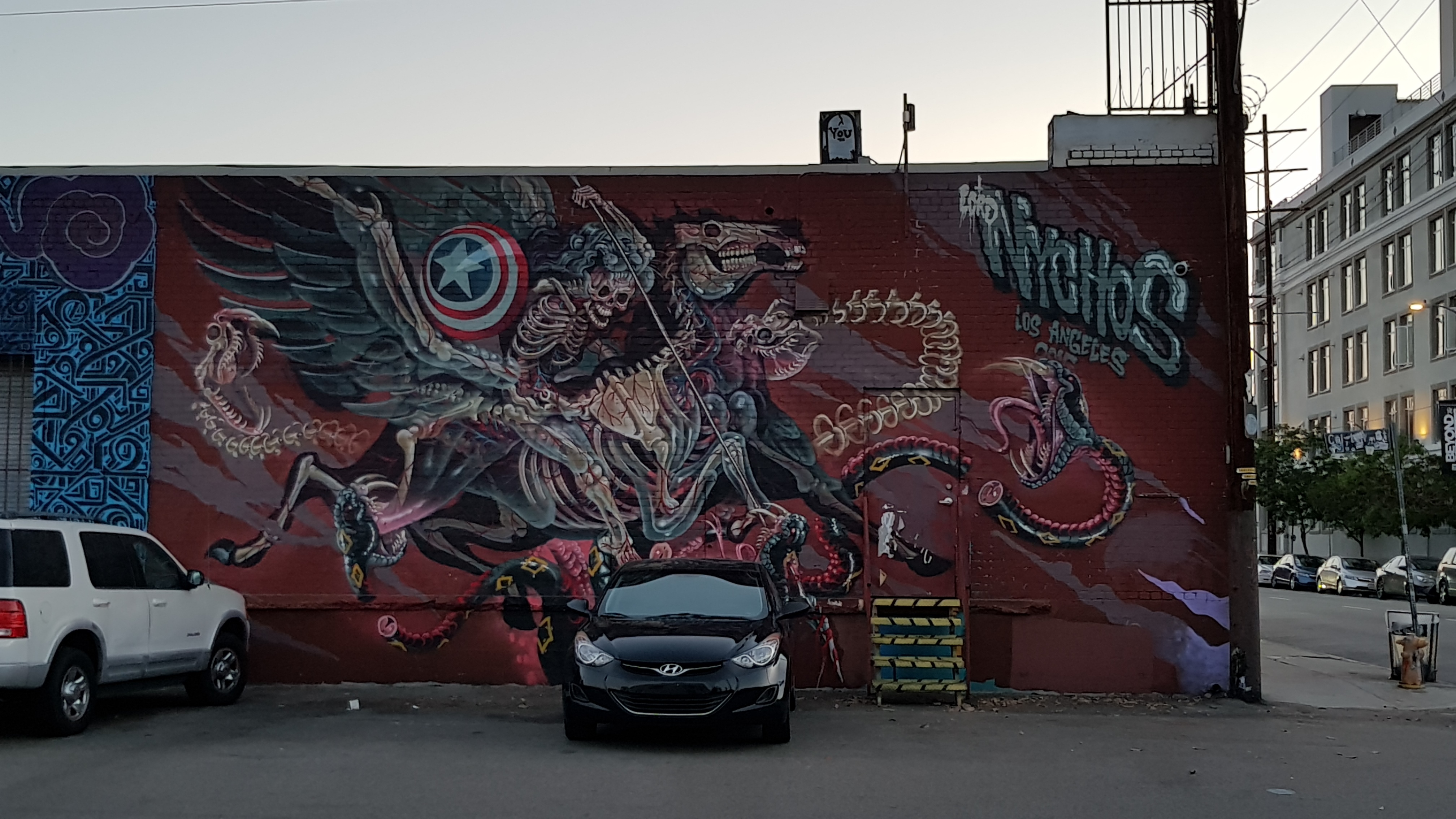 L’oeuvre est de type graffiti. Vous pouvez l’admirer dans la ville de Los Angeles en United States et plus précisément ici : 900 East 4th St, Los Angeles, CA 90013, USA.