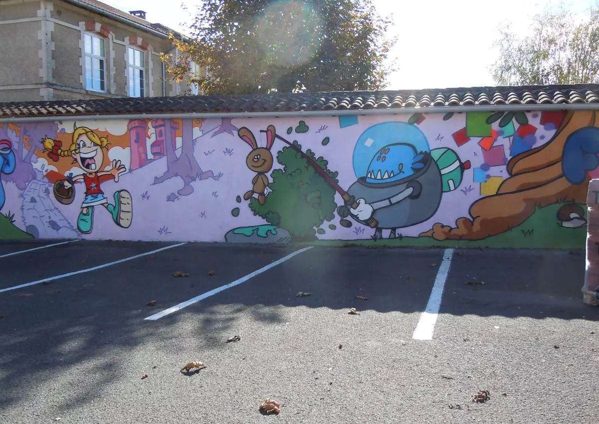 L’oeuvre Thérébentine fait le mur est de type graffiti. Vous pouvez l’admirer dans la ville de Nontron en France et plus précisément ici : 158 Bd Anatole France, 24311 Nontron, France.