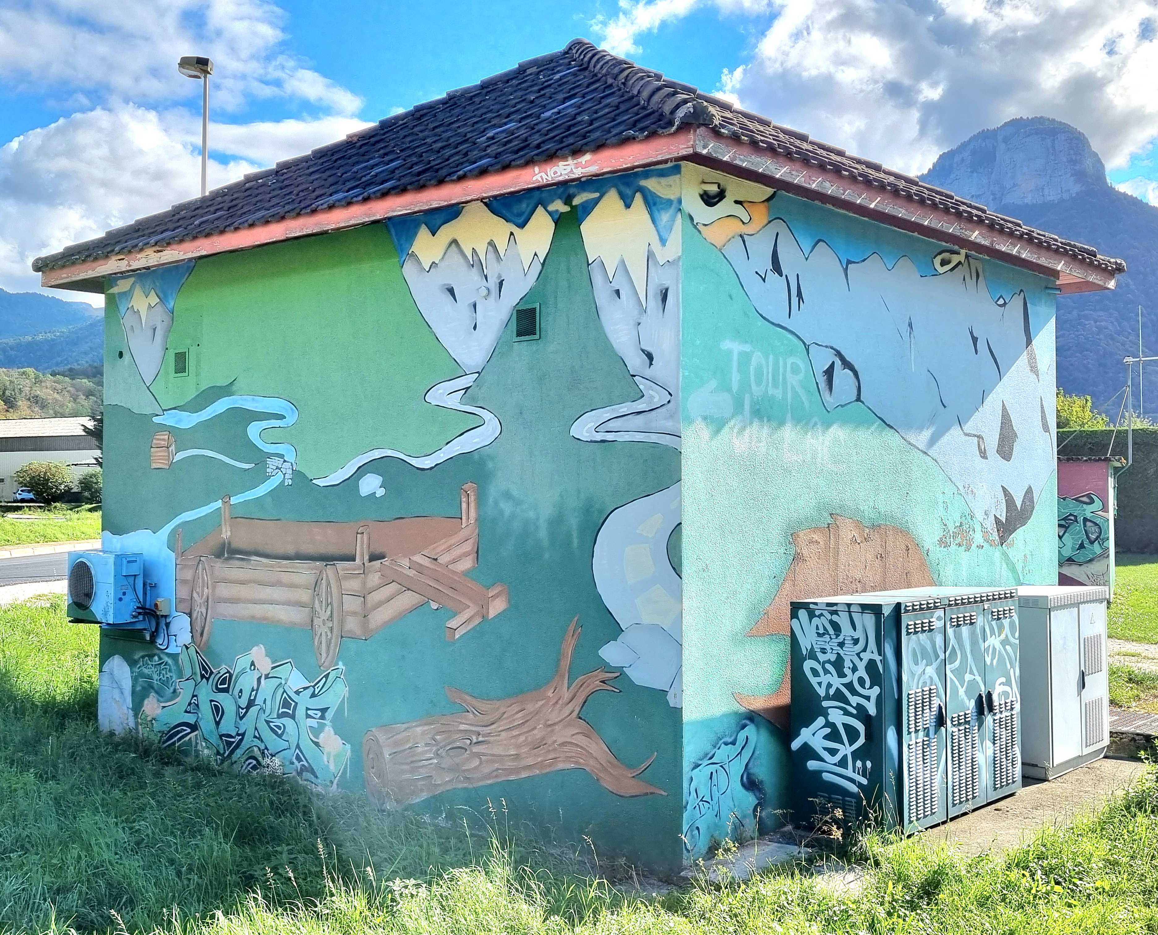 L’oeuvre est de type graffiti. Vous pouvez l’admirer dans la ville de Doussard en France et plus précisément ici : 855 Rte d'Annecy, 74210 Doussard, France.