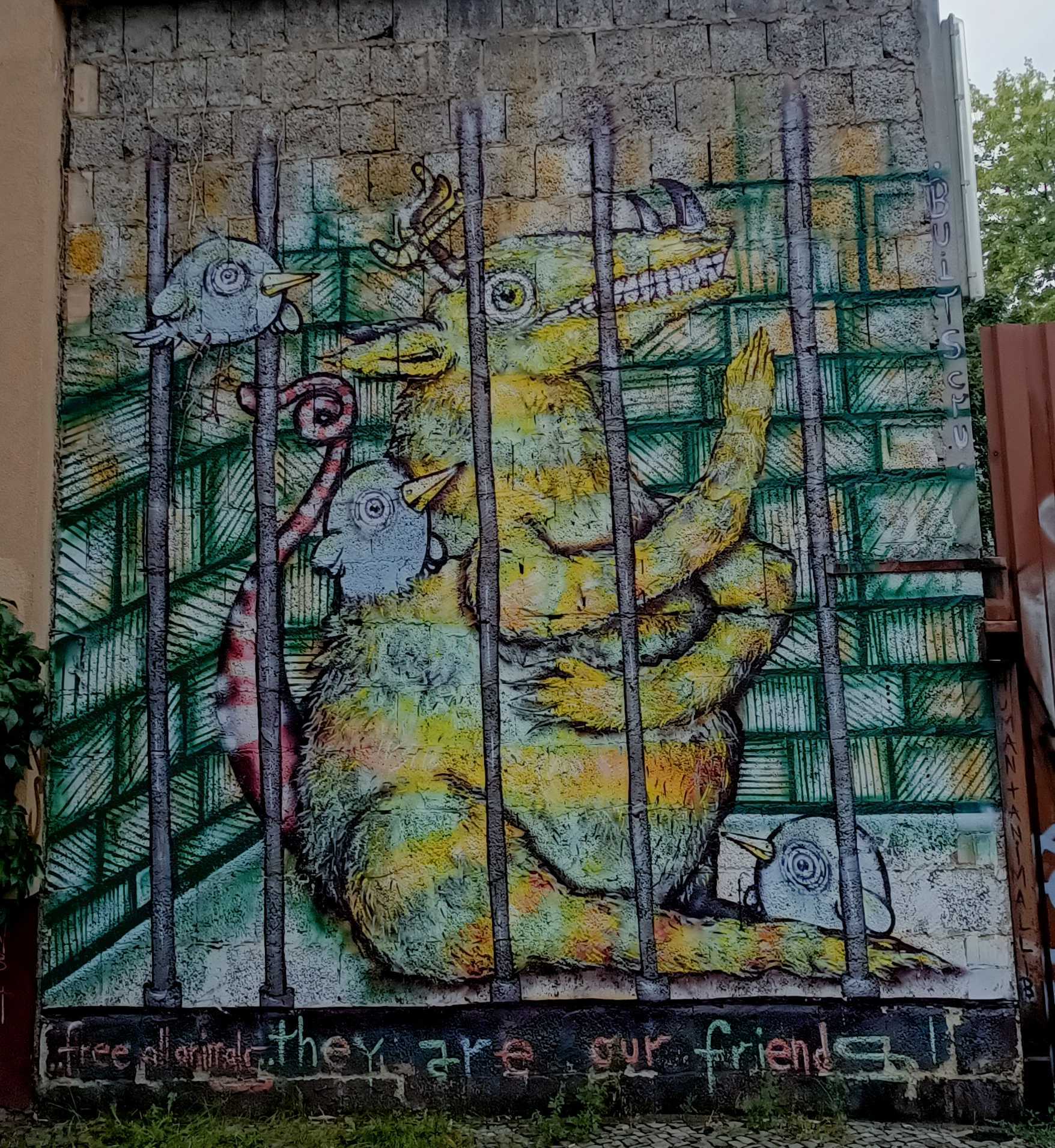 L’oeuvre est de type graffiti. Vous pouvez l’admirer dans la ville de Berlin en Germany et plus précisément ici : Colbestraße 27, 10247 Berlin, Germany.