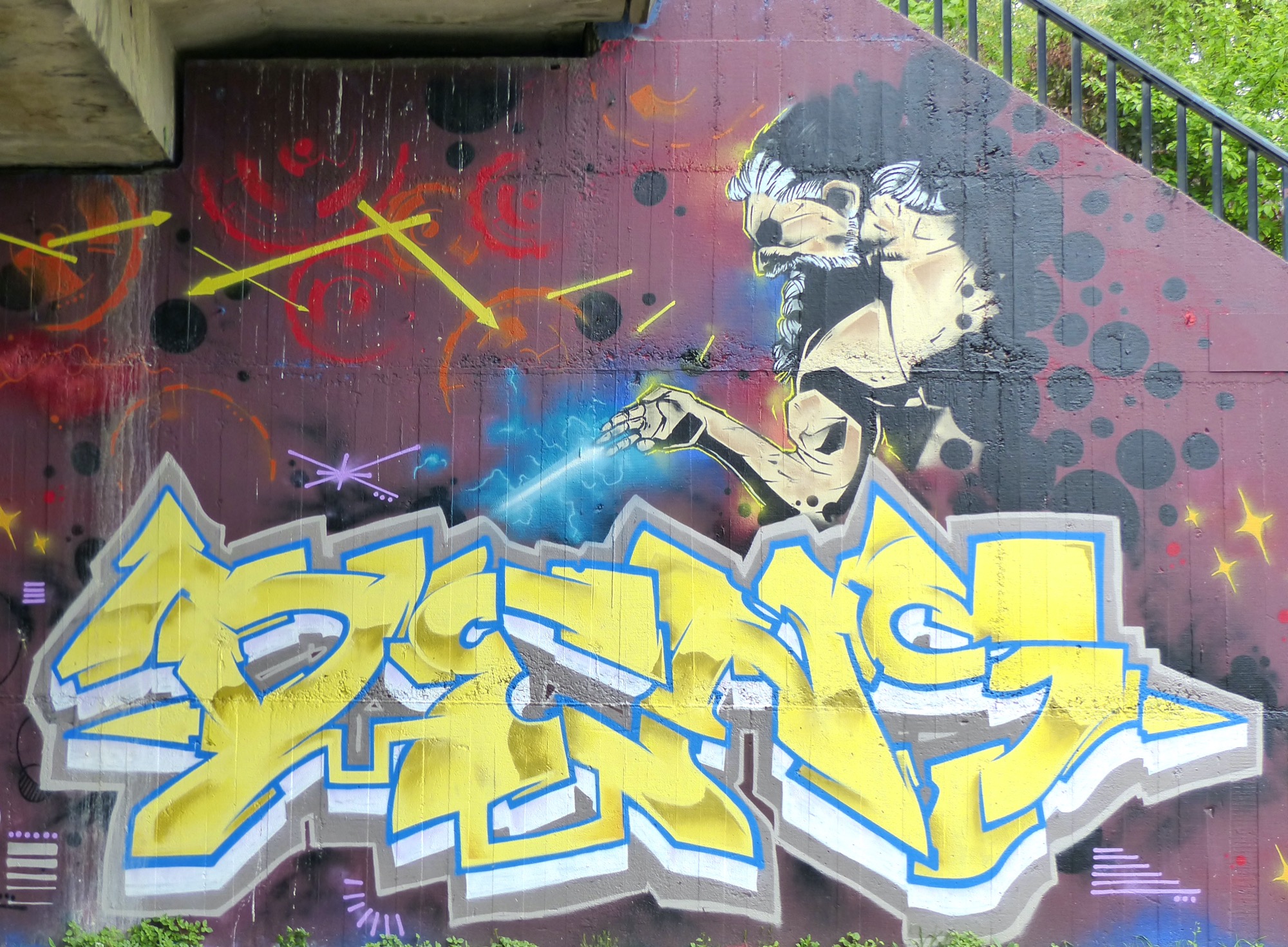 L’oeuvre est de type graffiti. Vous pouvez l’admirer dans la ville de Nantes en France et plus précisément ici : Avenue Jean Claude Bonduelle, 44000 Nantes, France.