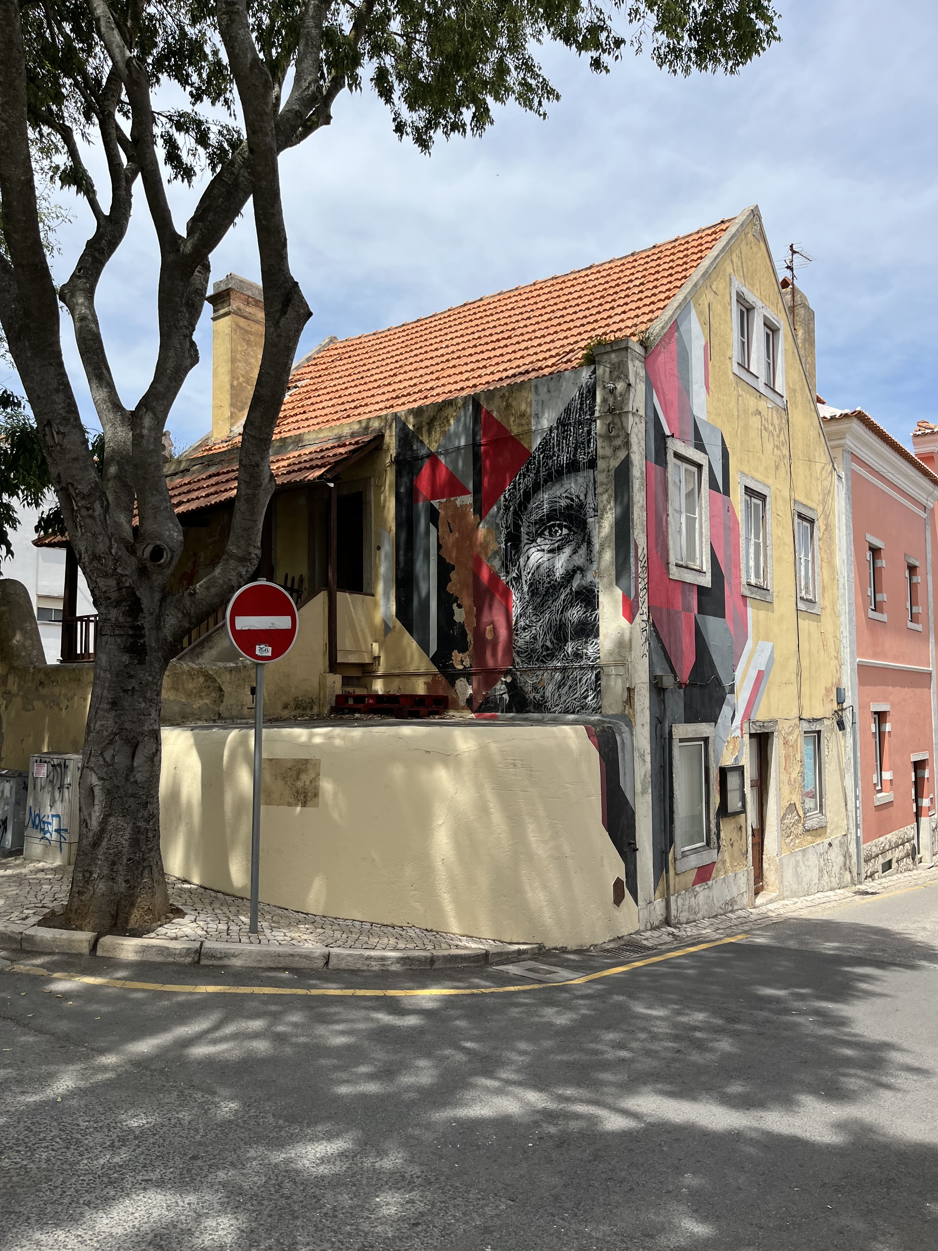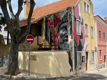 L’oeuvre est de type graffiti. Vous pouvez l’admirer dans la ville de Cascais en Portugal et plus précisément ici : Tv. Visc. da Luz 14, 2750-414 Cascais, Portugal.