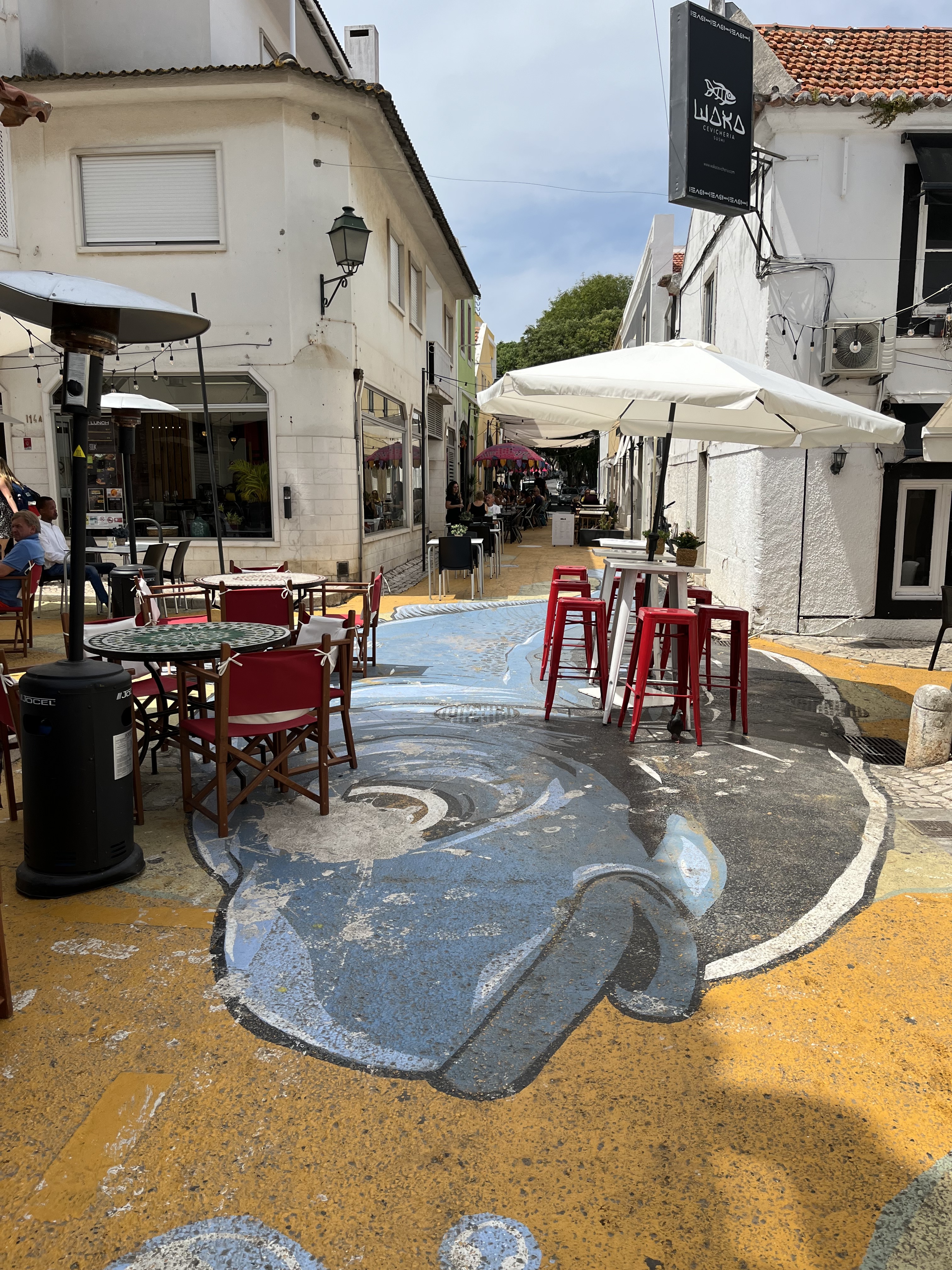 L’oeuvre est de type graffiti. Vous pouvez l’admirer dans la ville de Cascais en Portugal et plus précisément ici : Tv. Visc. da Luz 14, 2750-414 Cascais, Portugal.