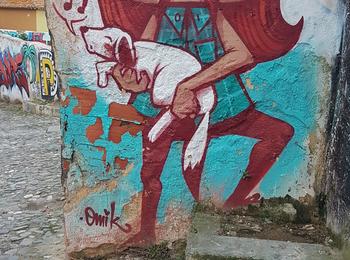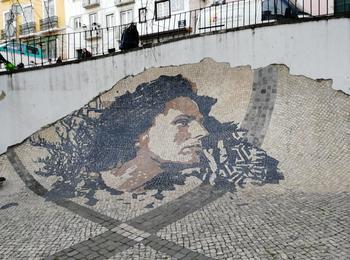 L’oeuvre est de type mosaic. Vous pouvez l’admirer dans la ville de Lisboa en Portugal et plus précisément ici : R. São Tomé 56, 1100-466 Lisboa, Portugal.