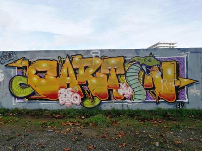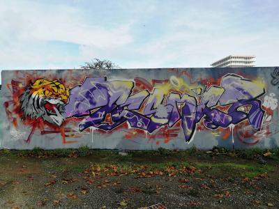 L'oeuvre est de type graffiti. Vous pouvez l'admirer dans la ville de Nantes en France et plus précisément ici : 8 Rue St Domingue, 44200 Nantes, France.