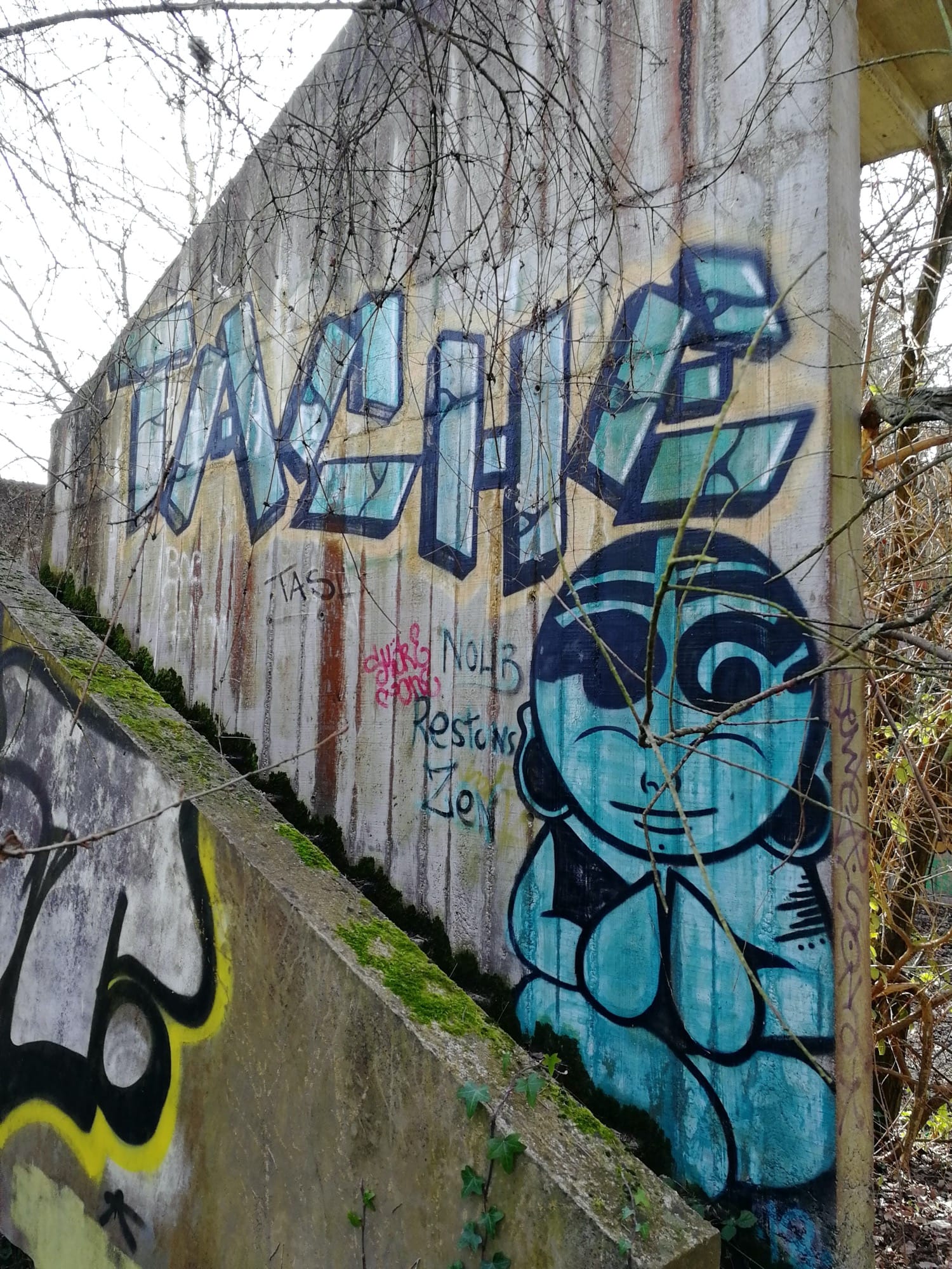 L’oeuvre est de type graffiti. Vous pouvez l’admirer dans la ville de Trignac en France et plus précisément ici : 9 Rue de la Gare, 44570 Trignac, France.