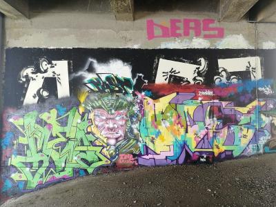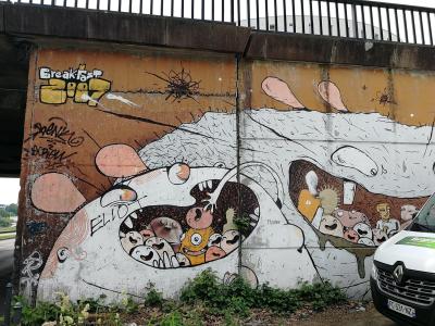 L'oeuvre est de type graffiti. Vous pouvez l'admirer dans la ville de Nantes en France et plus précisément ici : Avenue Jean Claude Bonduelle, 44000 Nantes, France.