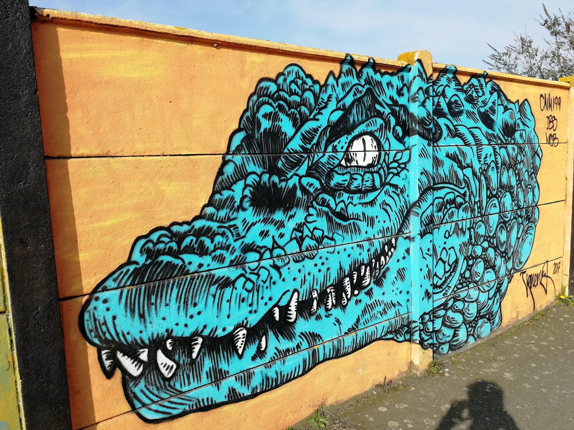 L’oeuvre est de type graffiti. Vous pouvez l’admirer dans la ville de Saint-Nazaire en France et plus précisément ici : 1 Boulevard Paul Leferme, 44600 Saint-Nazaire, France.